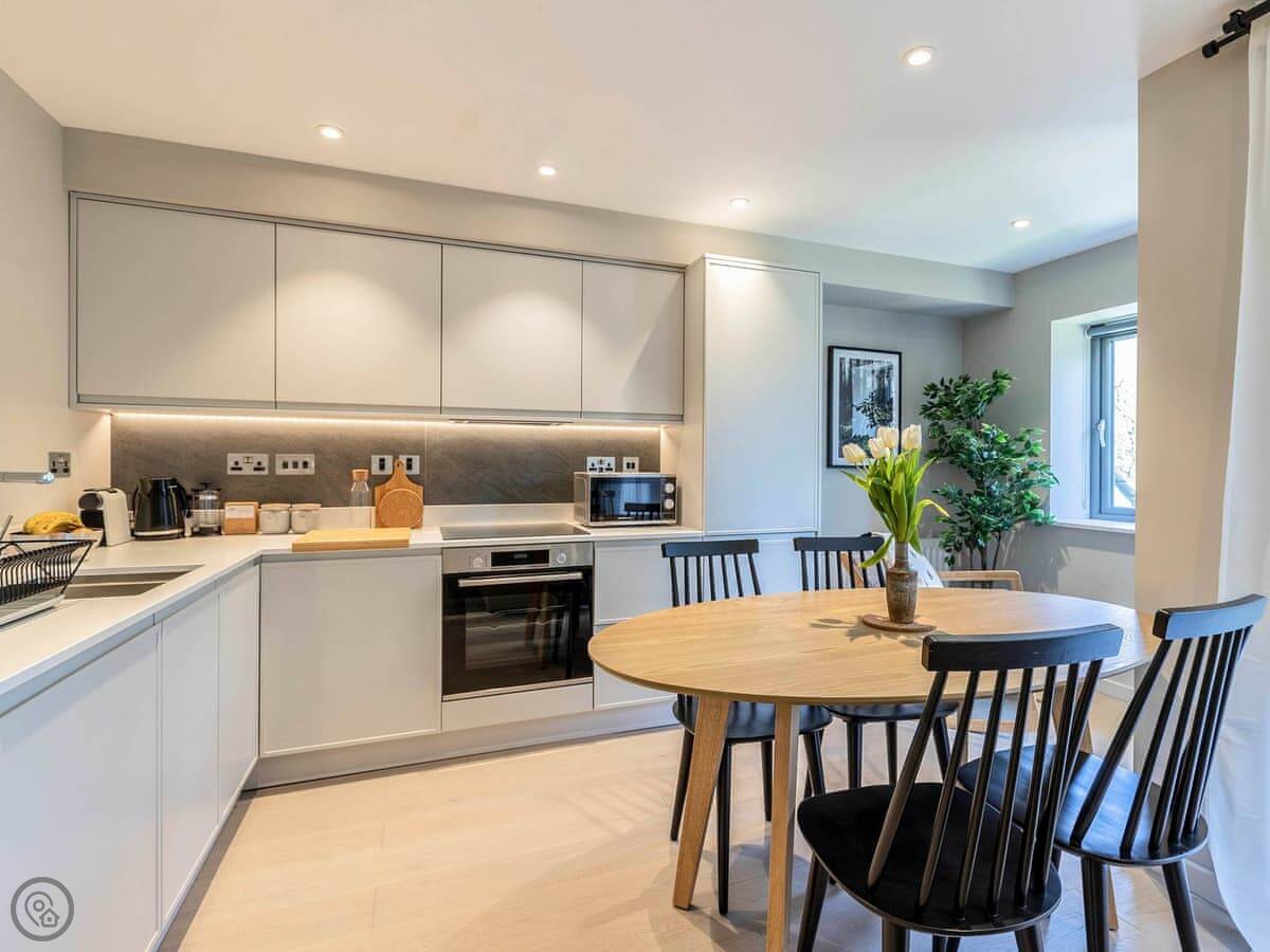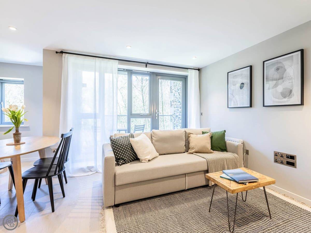 The moment you step into the apartment you are met with a light, clean, modern feel which instantly welcomes you. The living area is open plan, making for an ideal social space for family or friends to talk, laugh, eat and drink whilst recanting the days adventures. There is also a balcony so you can enjoy some fresh air and warm summer evenings. The kitchen is well appointed with all the facilities you would expect from a modern apartment and whether you are preparing a picnic or a three-course meal, you have all the space and utensils you need. There is a comfortable seating area if you simply want to relax and enjoy your favourite TV programmes. There are three bedrooms, a master with kingsize bed and en-suite shower room, a second kingsize bedroom and the third is a standard double, of course there is also a bathroom with bath and shower above.