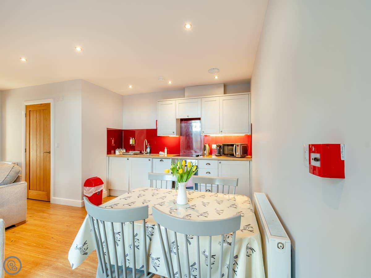 The kitchen has a washing machine. Bedding and towels are included. There's a cot and a stairgate if you need them. You can bring up to two dogs.
