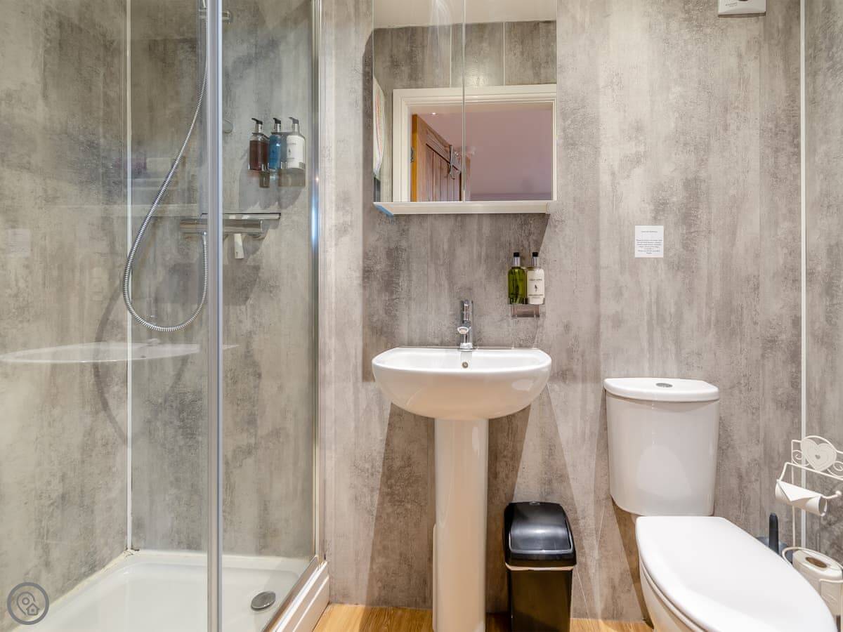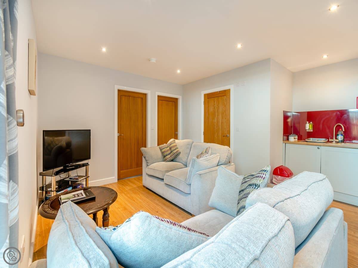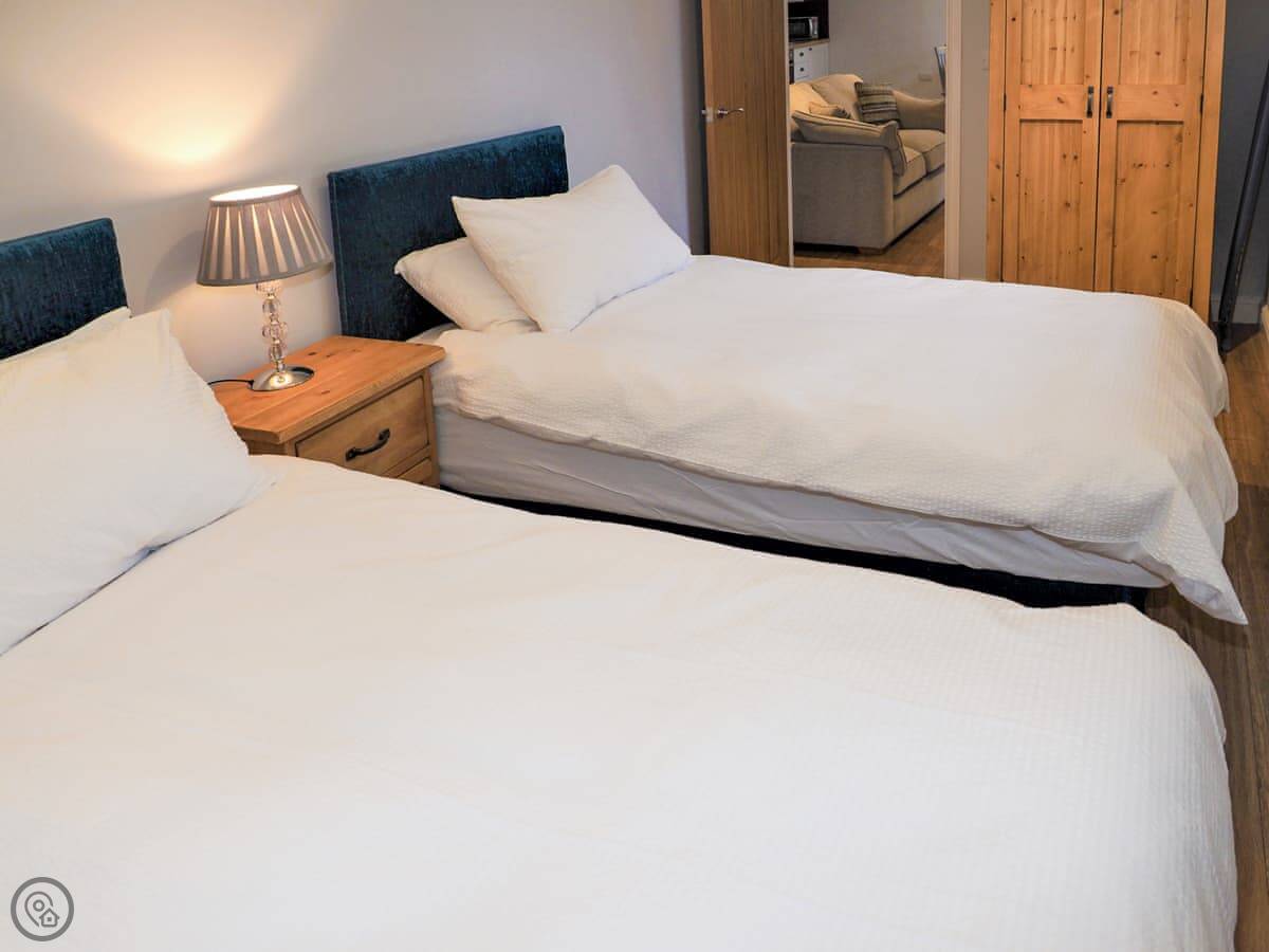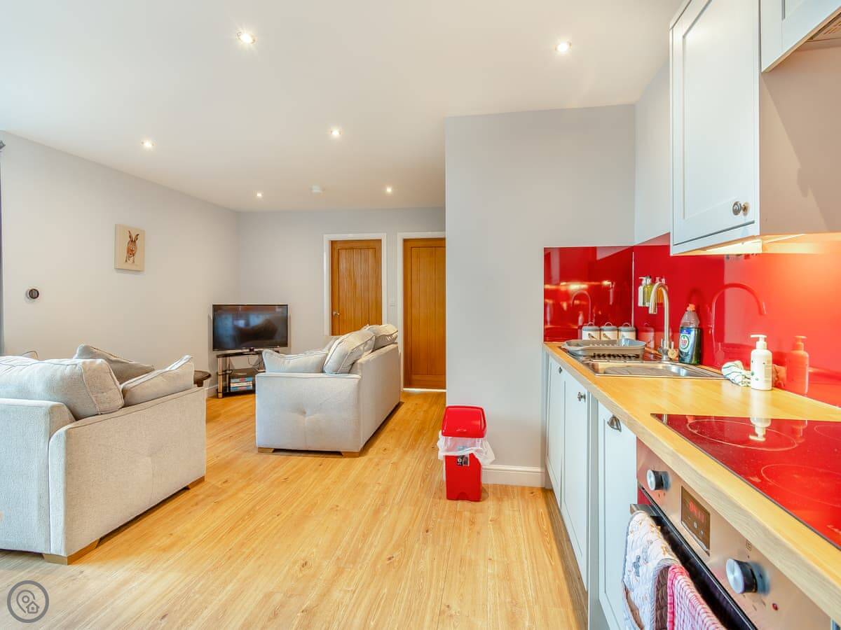 It sleeps four. Two bedrooms and one bathroom with a shower. It's got a 4 Star rating, which means it's well kept and comfortable. Being a barn conversion, the ceilings are high and the main room is open plan. It feels spacious.