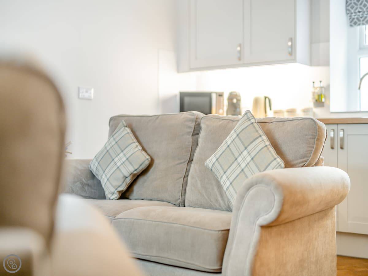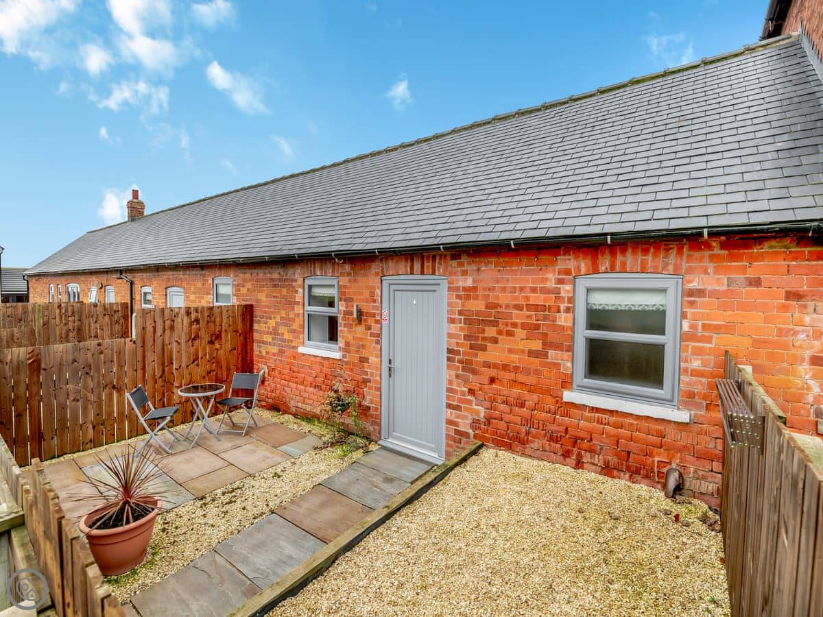 You’ve got your own enclosed patio garden with furniture. It looks out over the fields. It’s quiet.