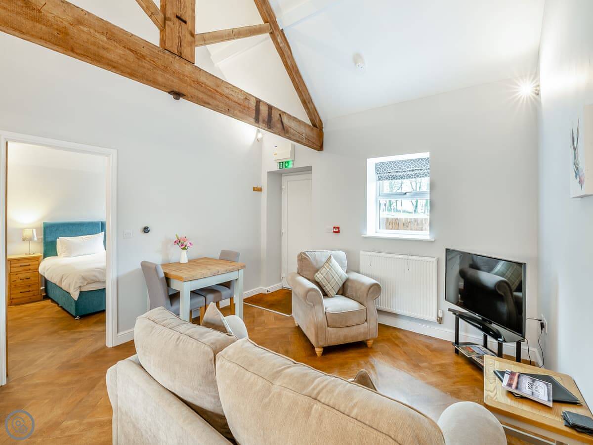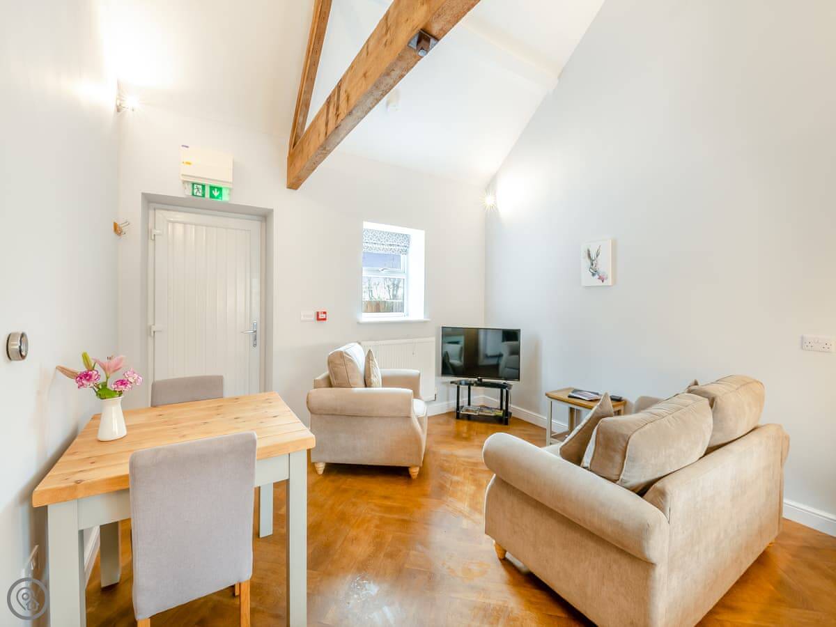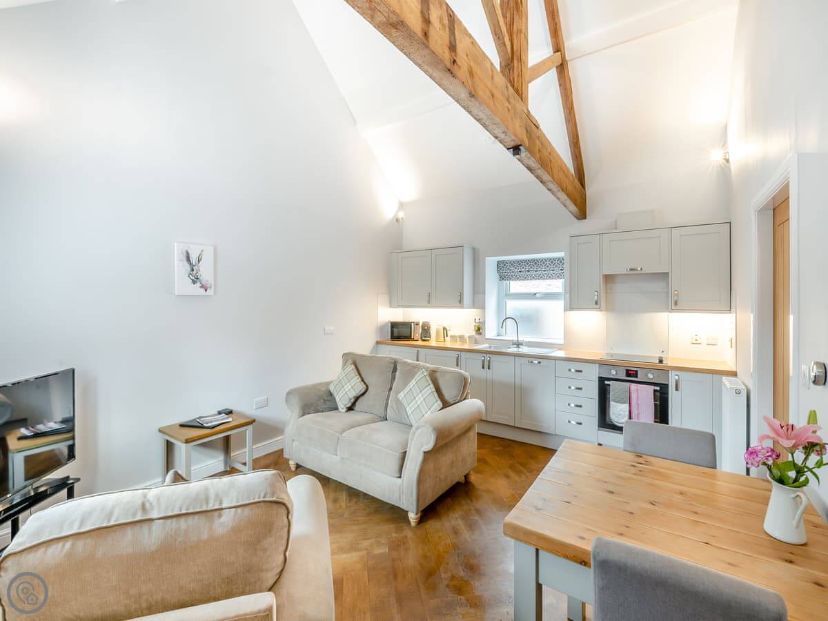 The Milking Parlour is near Beverley, on the farm here at High Hunsley. It's a barn conversion, so it’s one open space downstairs and a bedroom up in the eaves. Sleeps two.