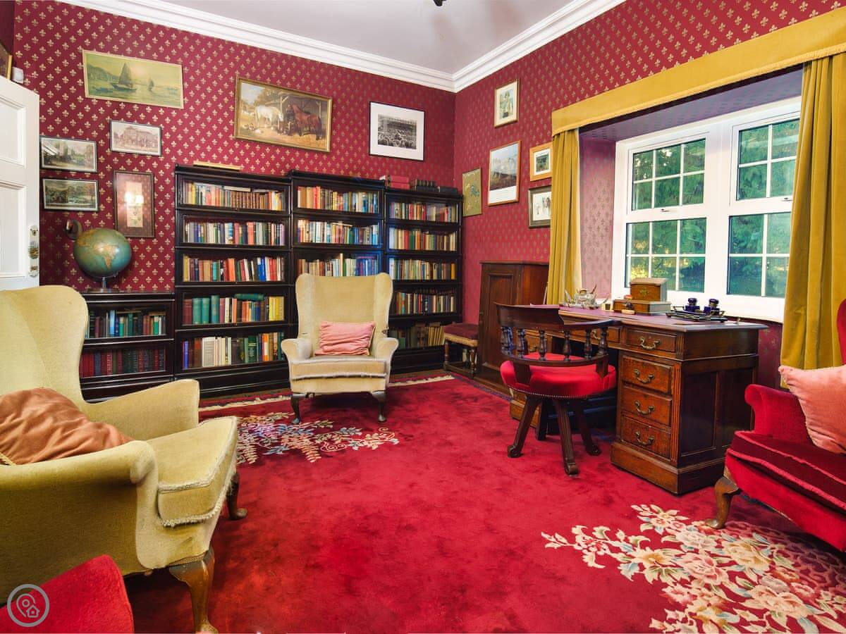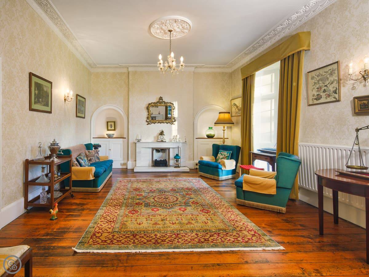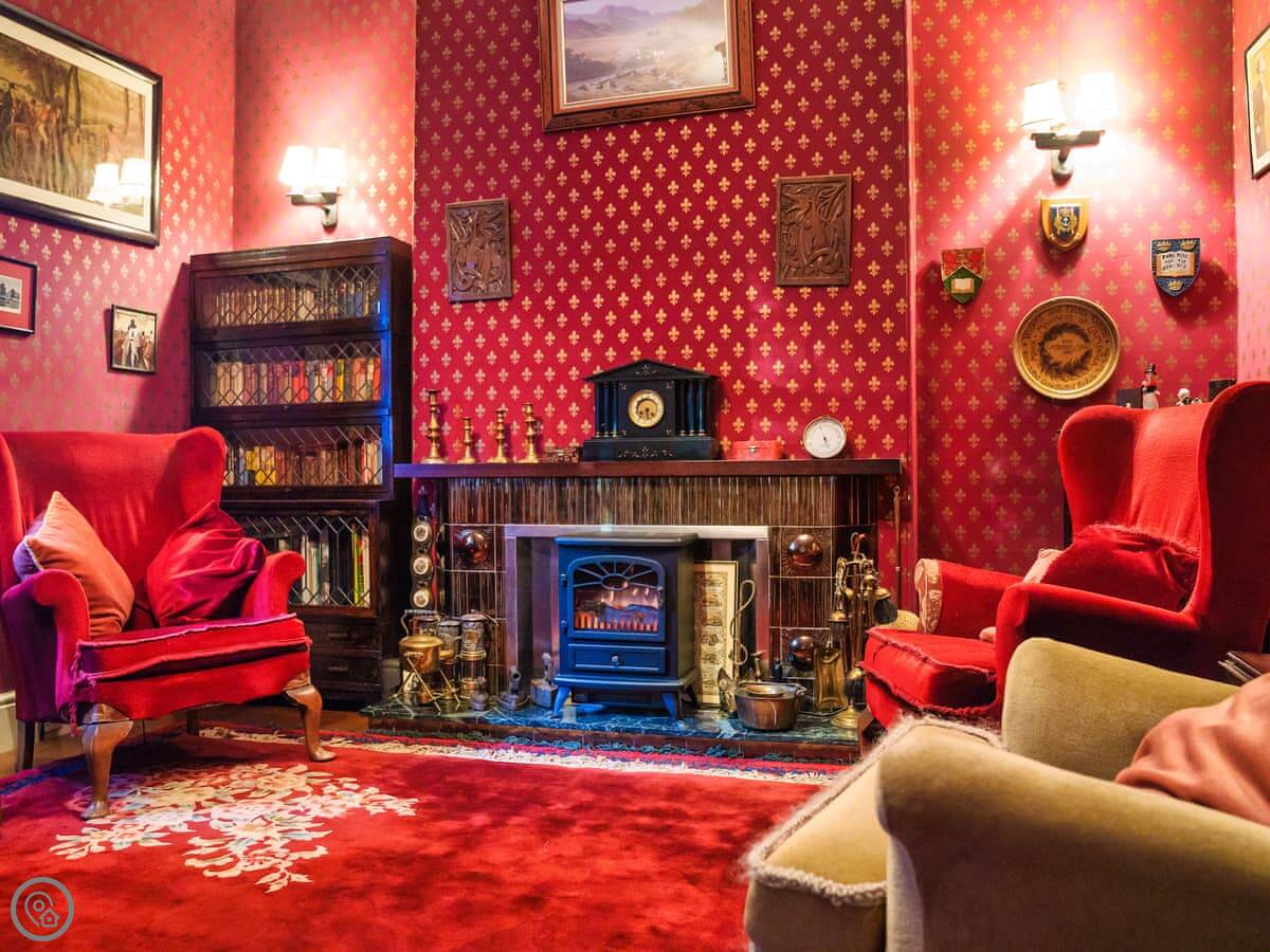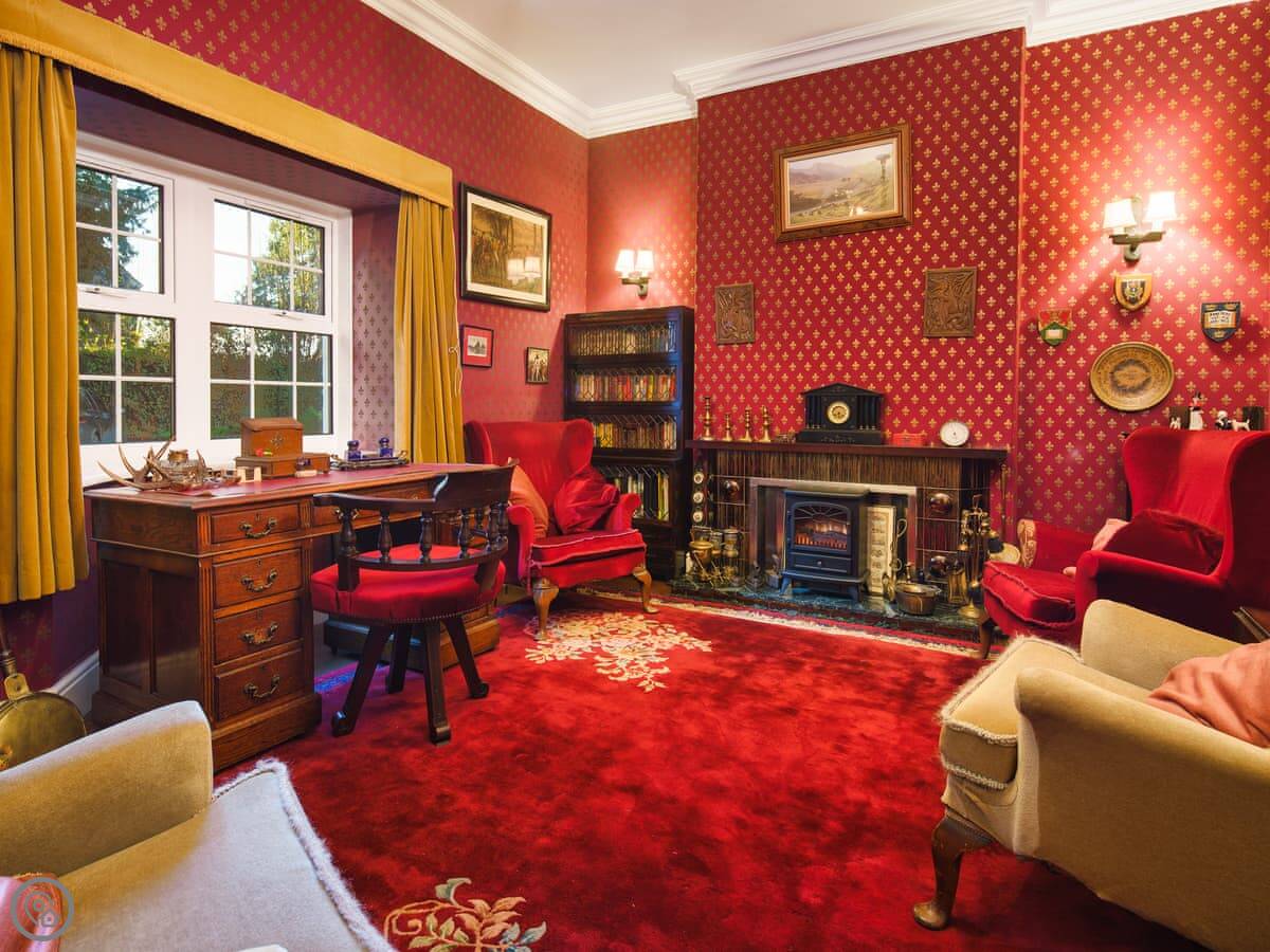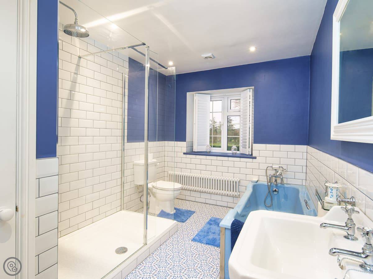 It's a big place, sleeps ten. Five bedrooms, three bathrooms. It's got a 5 Star rating, which means it's well equipped and comfortable. There are two staircases, which is handy with a big group. Some of the bedrooms are quite traditional, with patterned wallpaper. It's not a blank white box.