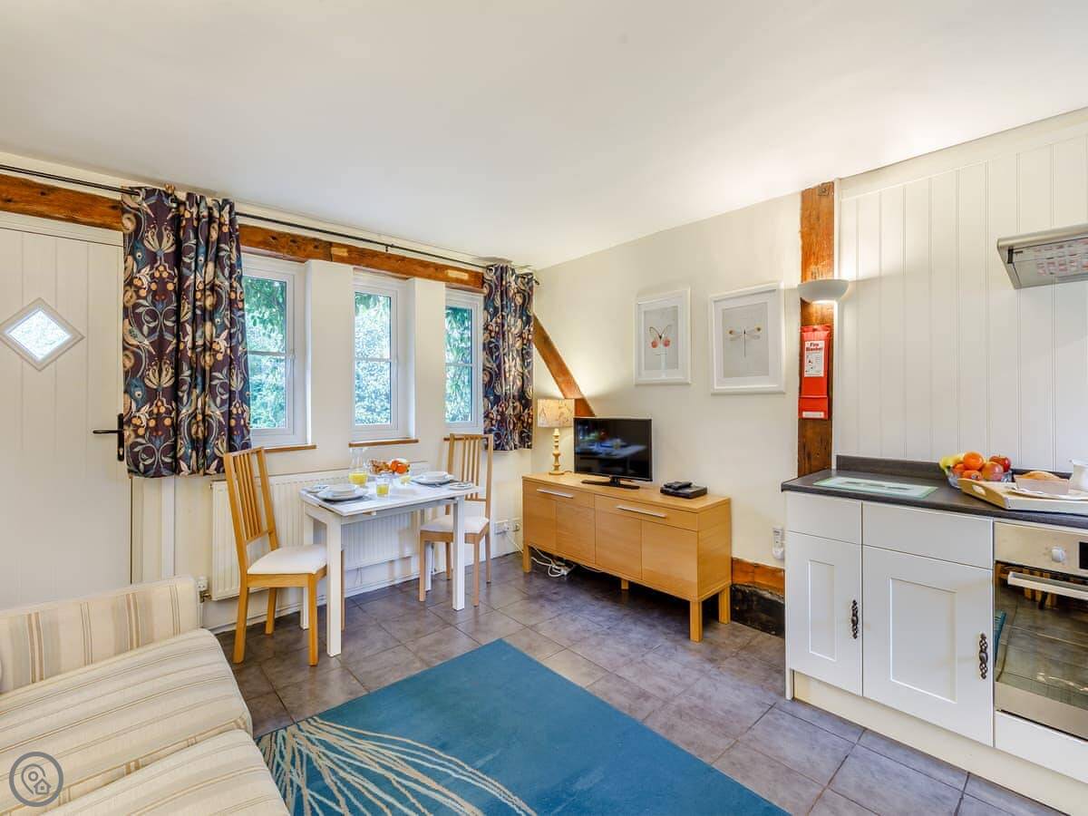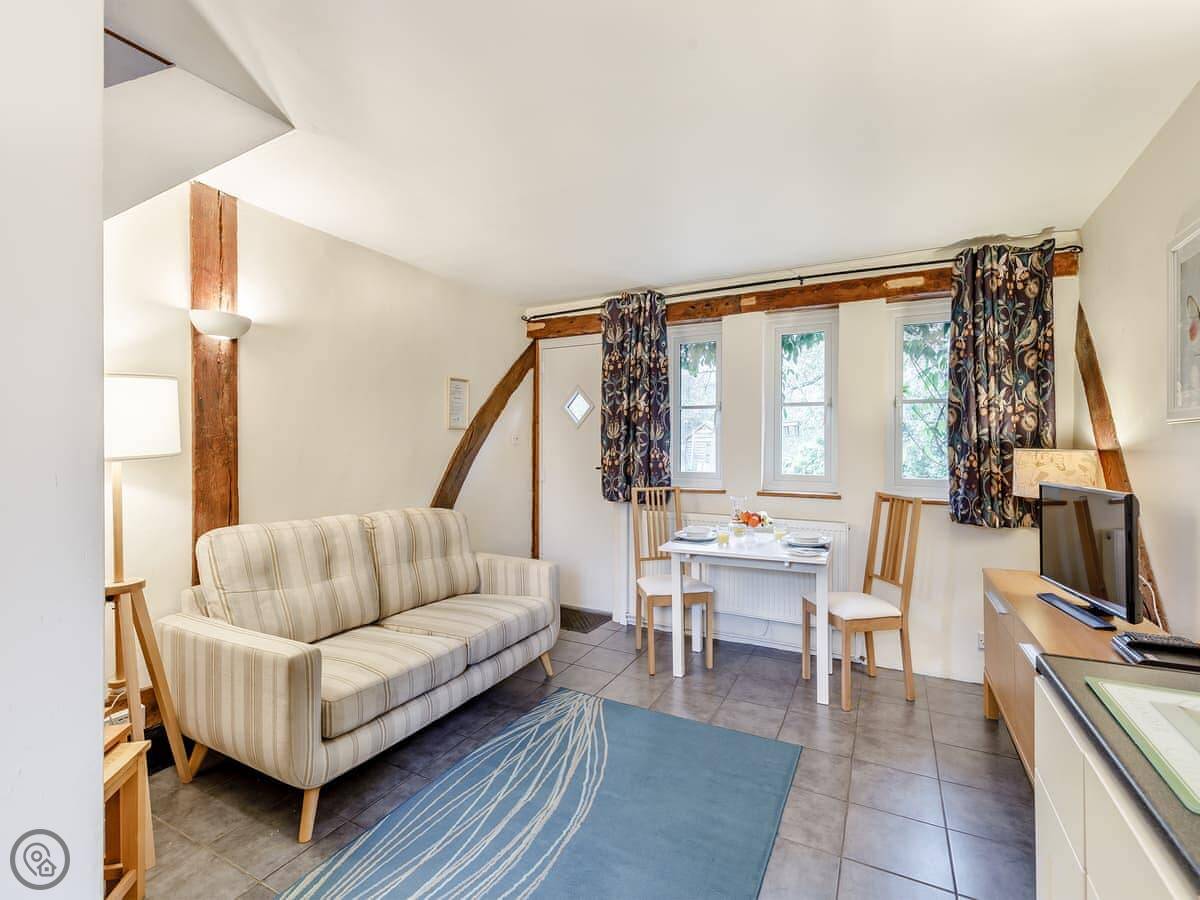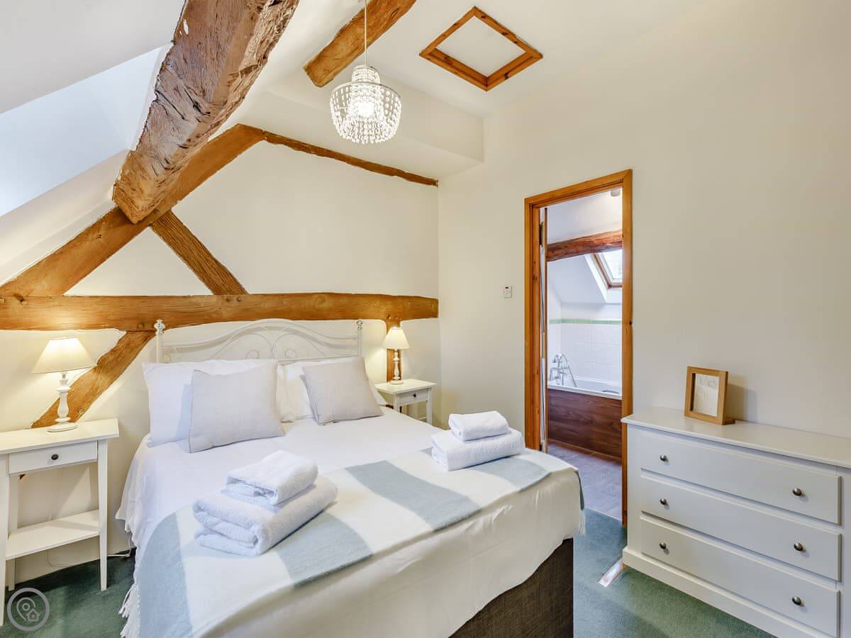 It's got a 4 Star rating. That means it's comfortable and well-finished. The beams are all original, which looks nice. You get your own patio and garden area. There's parking right there.