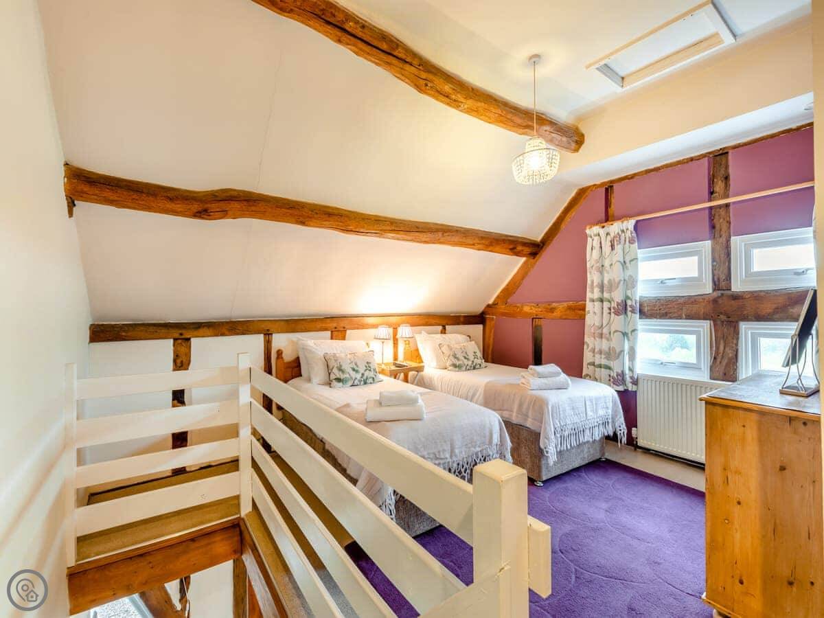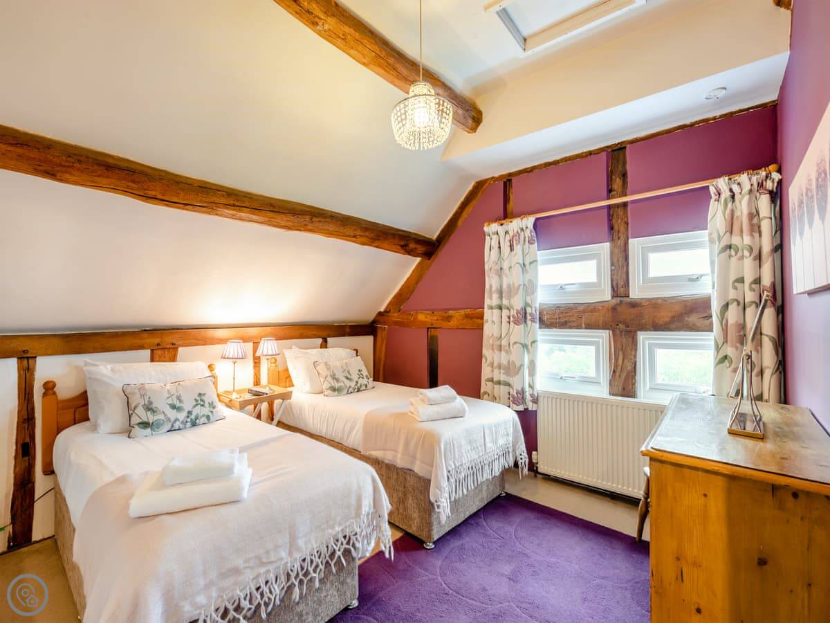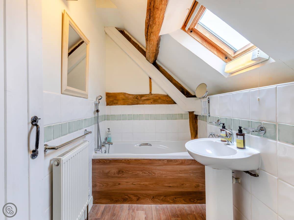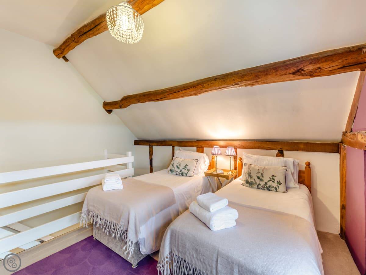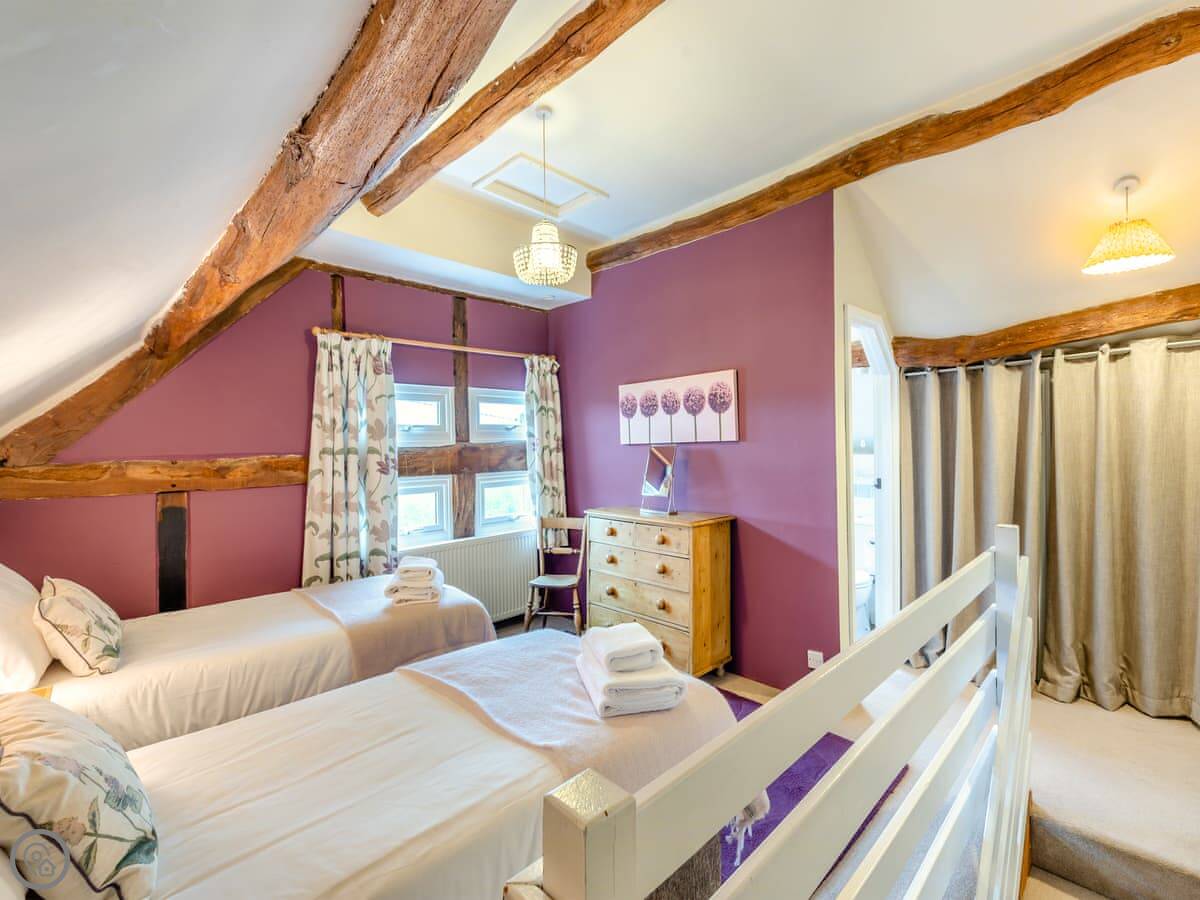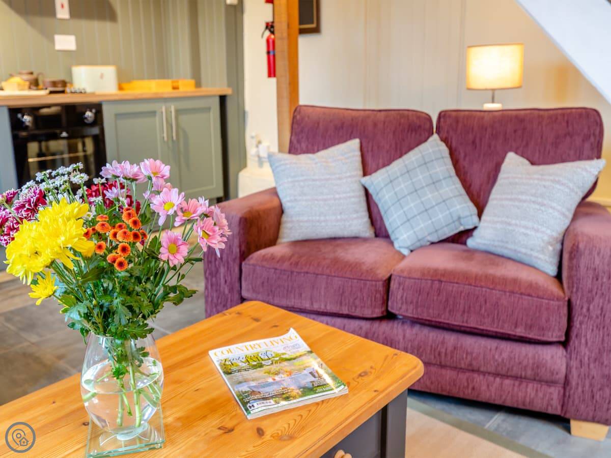 It's a converted barn from the 1970s, so you've got all the beams and that vaulted ceiling. It's got a 4 Star rating. There's a small garden with a BBQ and a patio. You can park right outside.