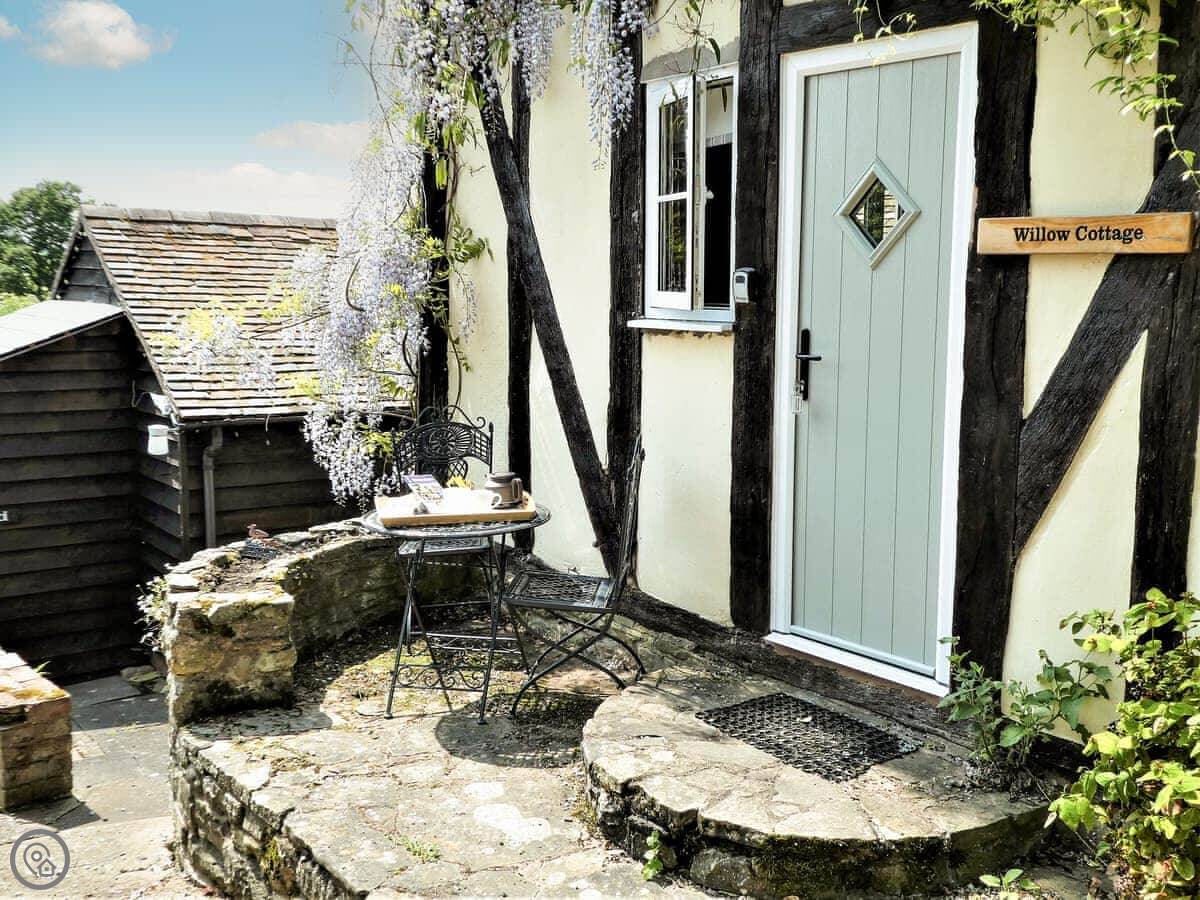 This is 'Willow'. It's a one-bedroom detached cottage on Whitewells Farm, near Ridgeway Cross. Sleeps two.