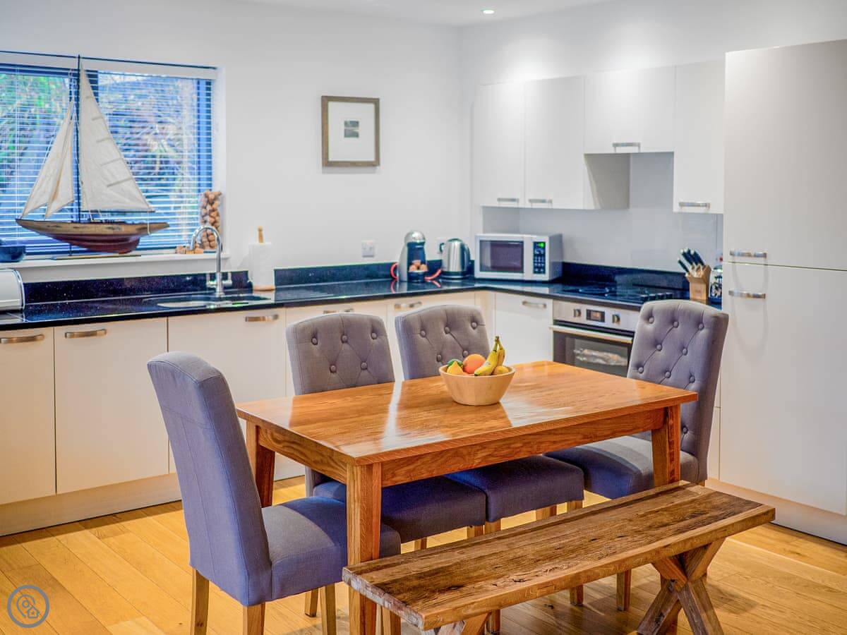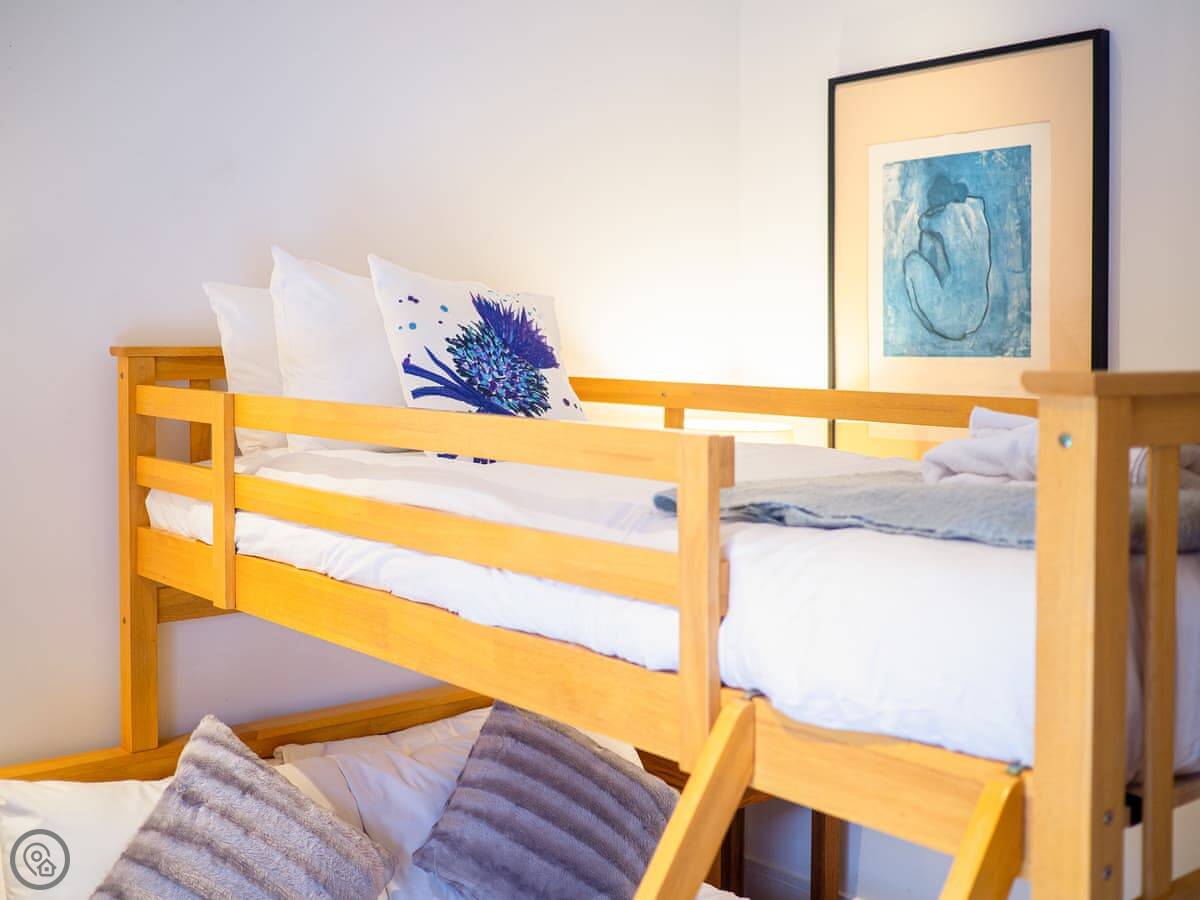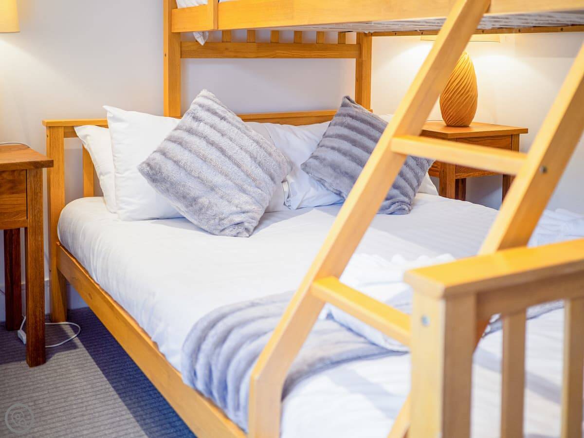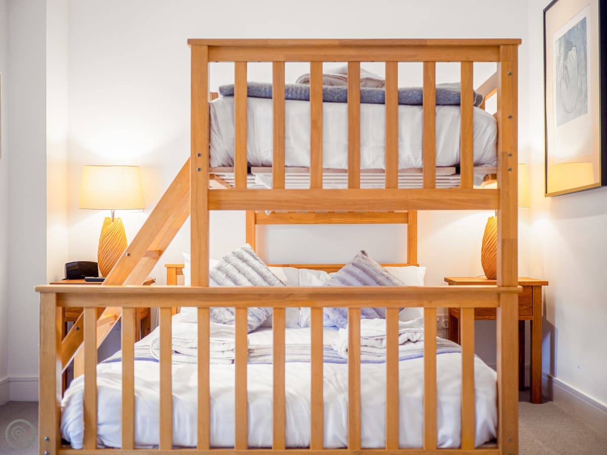 Loch View No. 1 accommodates up to five adults in two bedrooms. One bedroom has a kingsize bed and the other has a triple bed. Cots are available for infants.
