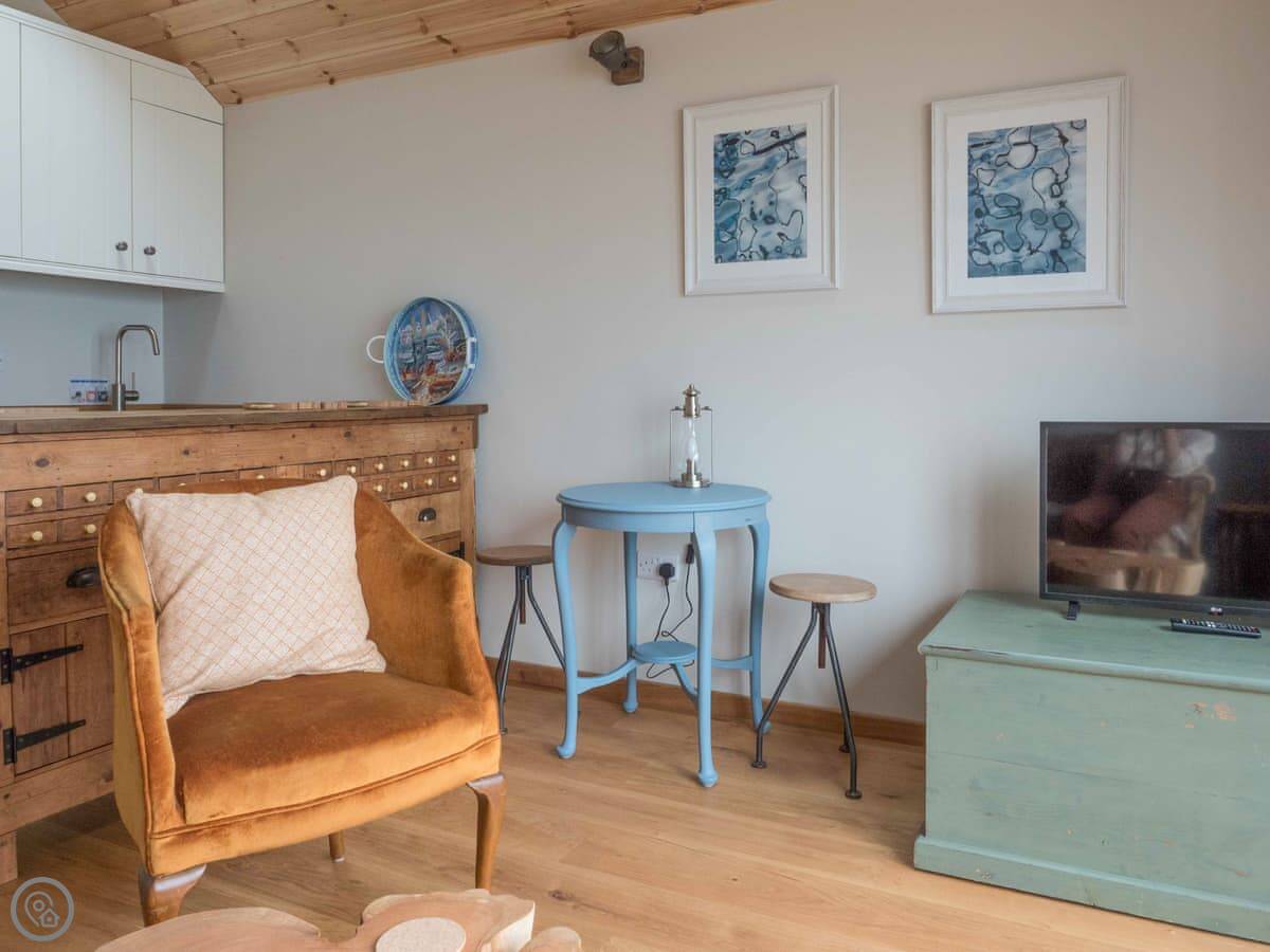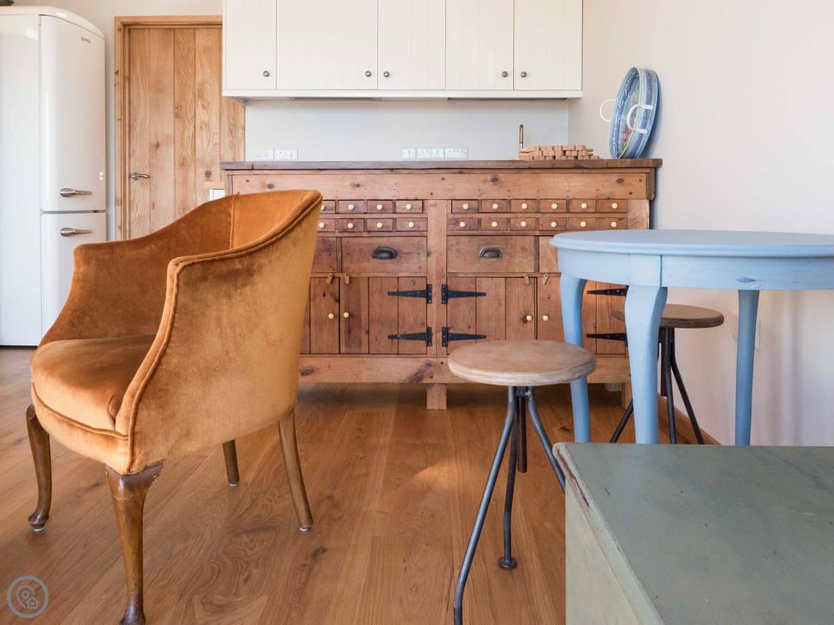 Kittiwake is a well appointed chalet with an eclectic mix of vintage, rustic and up-cycled furnishings, as well as a heated oak floor. A perfect getaway any time of year, this very memorable chalet is anything but ordinary. Accessed by steps at both ends of the property, it is set is all on one level, and raised on piles to mitigate for rare storm flooding. Situated right on the seafront of Cowes, you will be drawn to the sea view whatever the weather. You can relax on the decked area or the lawn and watch the ships sail by, a truly beautiful experience.