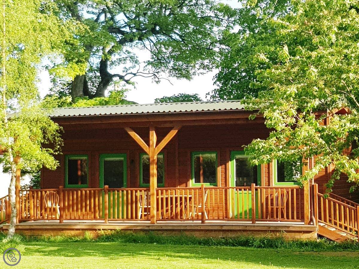 Hazel Studio is in Rafford, near Forres. It's a single storey timber building, one of six here. It's on a working farm, so you'll see horses and chickens around. The view from the big windows is over a paddock with some trees and ponds.