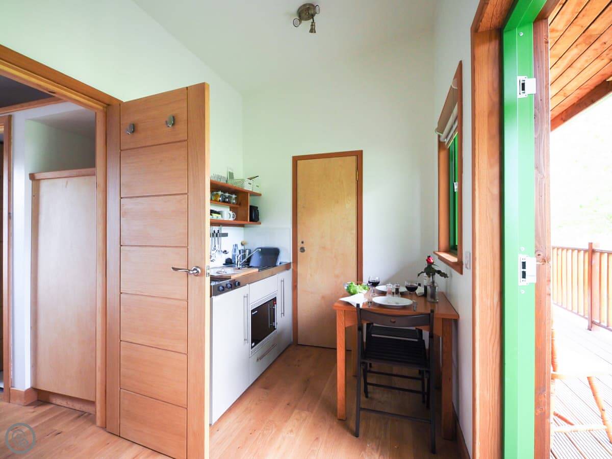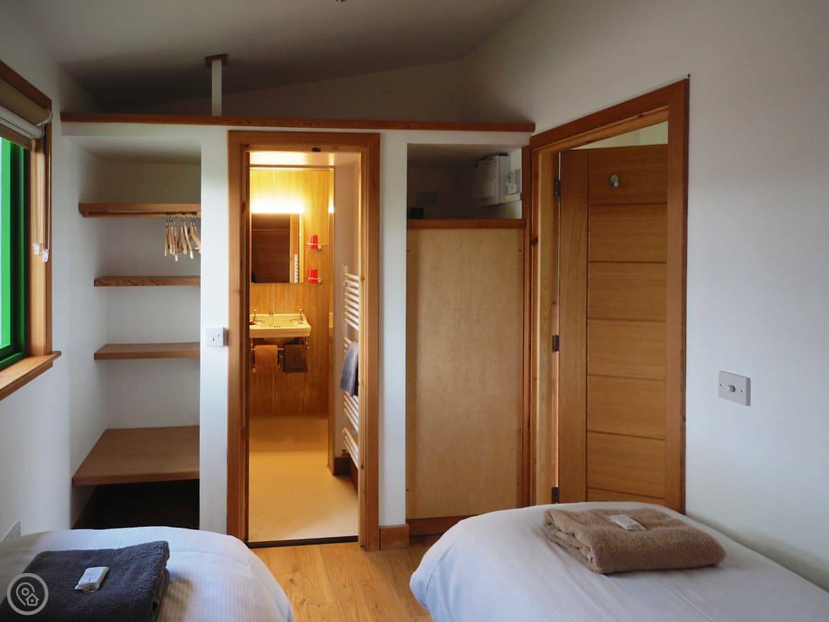 It's part of a working farm. There are five other studio lodges like this on-site, so it can work for bigger groups if you book a few together. You share a veranda with the studio next door, which leads straight out into the paddock. The whole place is built from local materials, so it feels like it belongs here.