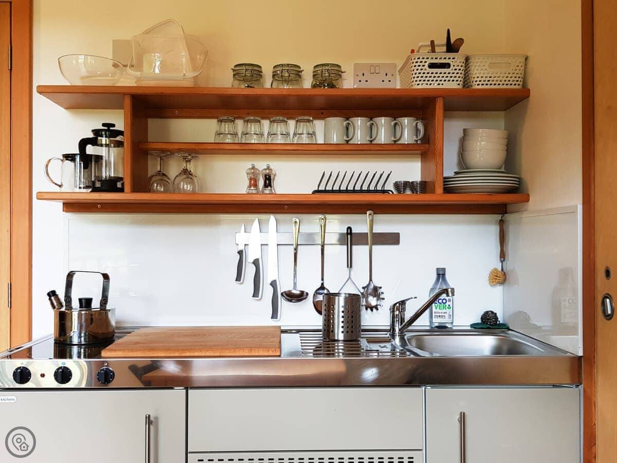 This is Ash Studio, it's up near Rafford in Aberdeenshire. It's a compact space for up to three people, but it's really designed for one or two. There's one bedroom with a kingsize bed that can be split into twins if you ask ahead, and one bathroom.