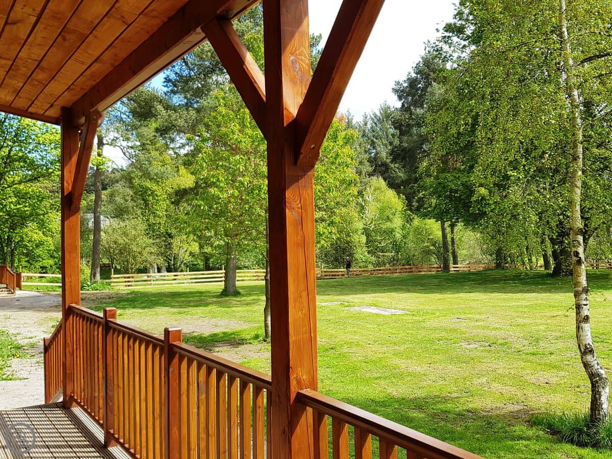 You share a big veranda with the other lodges, which is fine, you often get it to yourself. You look out over a paddock with some ponds. It's quiet.