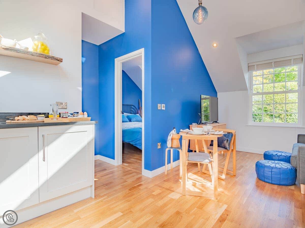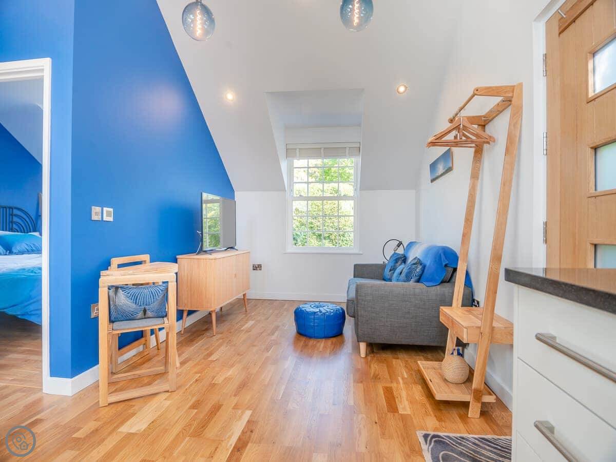 It's got a five-star rating. That means it's been done to a high standard, everything's new and clean. It's an open-plan space, so the living, kitchen, and sleeping area are all in one room. The bathroom is separate. You get your own patio and garden area. You're right next to our house, but it's private.