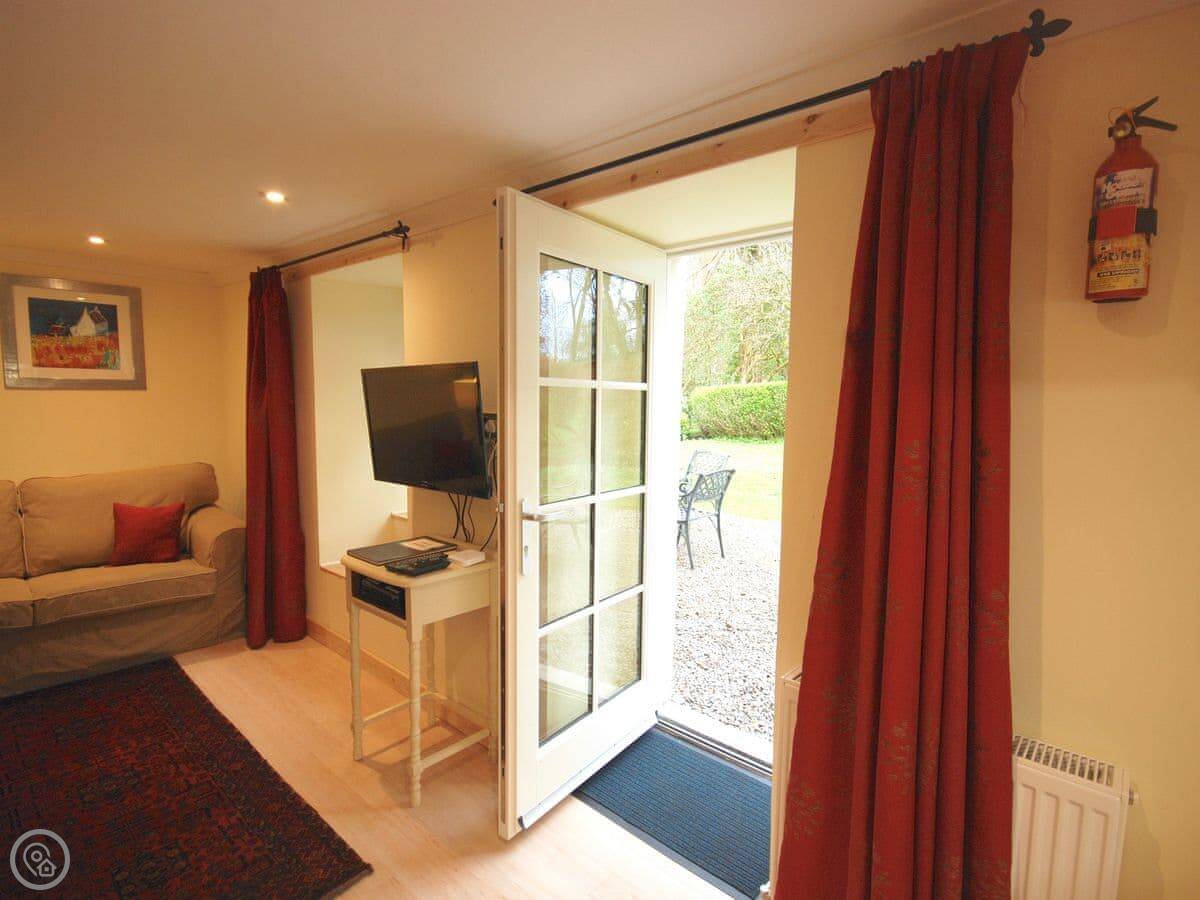 The main living area is open plan. There are patio doors out to your own seating area. The gardens around you are shared with the other cottages, but yours is private.