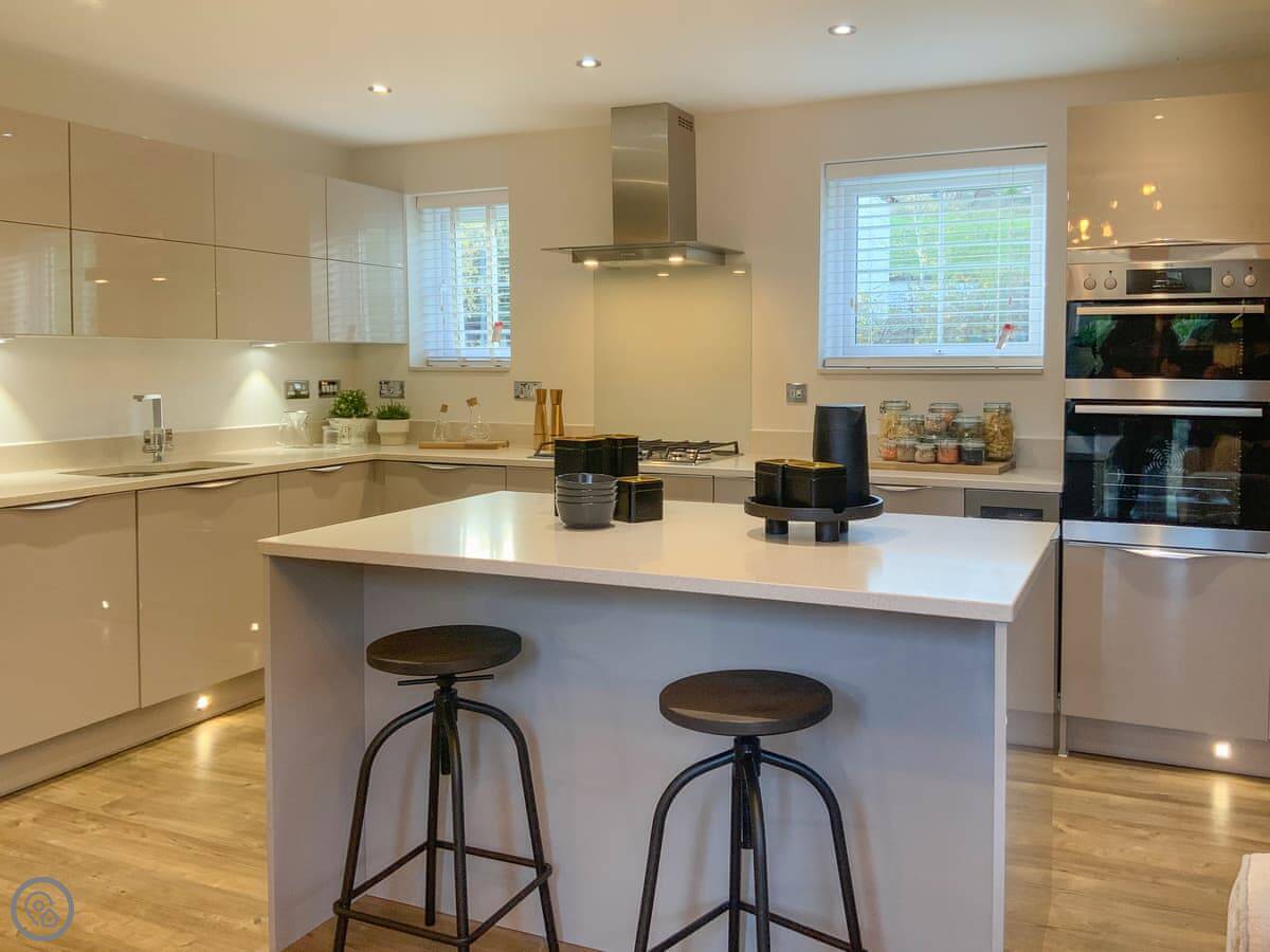 Silkstone Crescent is in Buxton, up at Harpur Hill. It's a detached house on a modern estate. Sleeps eight in four bedrooms. You've got two bathrooms, one is an en-suite with a walk-in shower.
