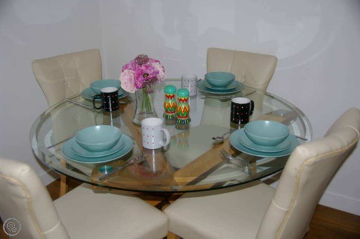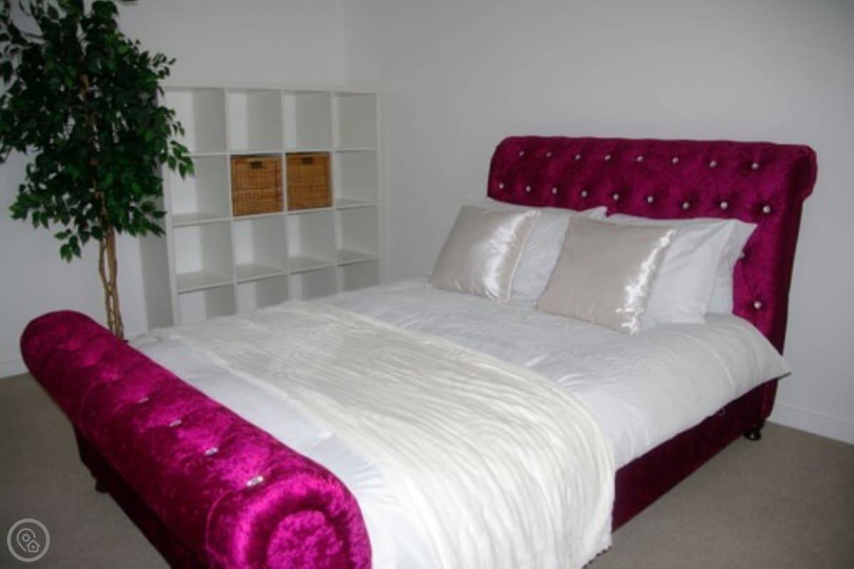 The Cambridge is not a typical apartment, since you have your own front door and parking directly outside. There is a bright spacious living room with comfortable crushed velvet sofas, a dining area with table and chairs and a fitted, fully equipped kitchen. One of the bedrooms has Italian beds, one is kingsize and the other a double.