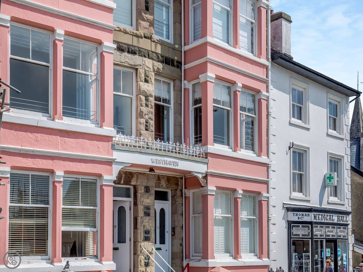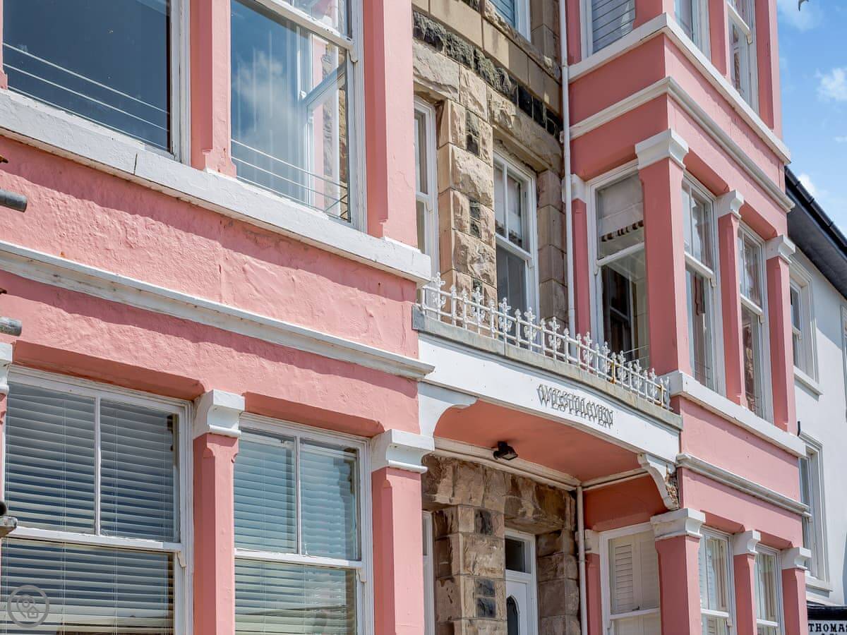 Apartment 2 is on the first floor of a big pink Georgian building right in the middle of Aberdovey. It used to be the Harbour Hotel. You're basically a minute's walk from the water.