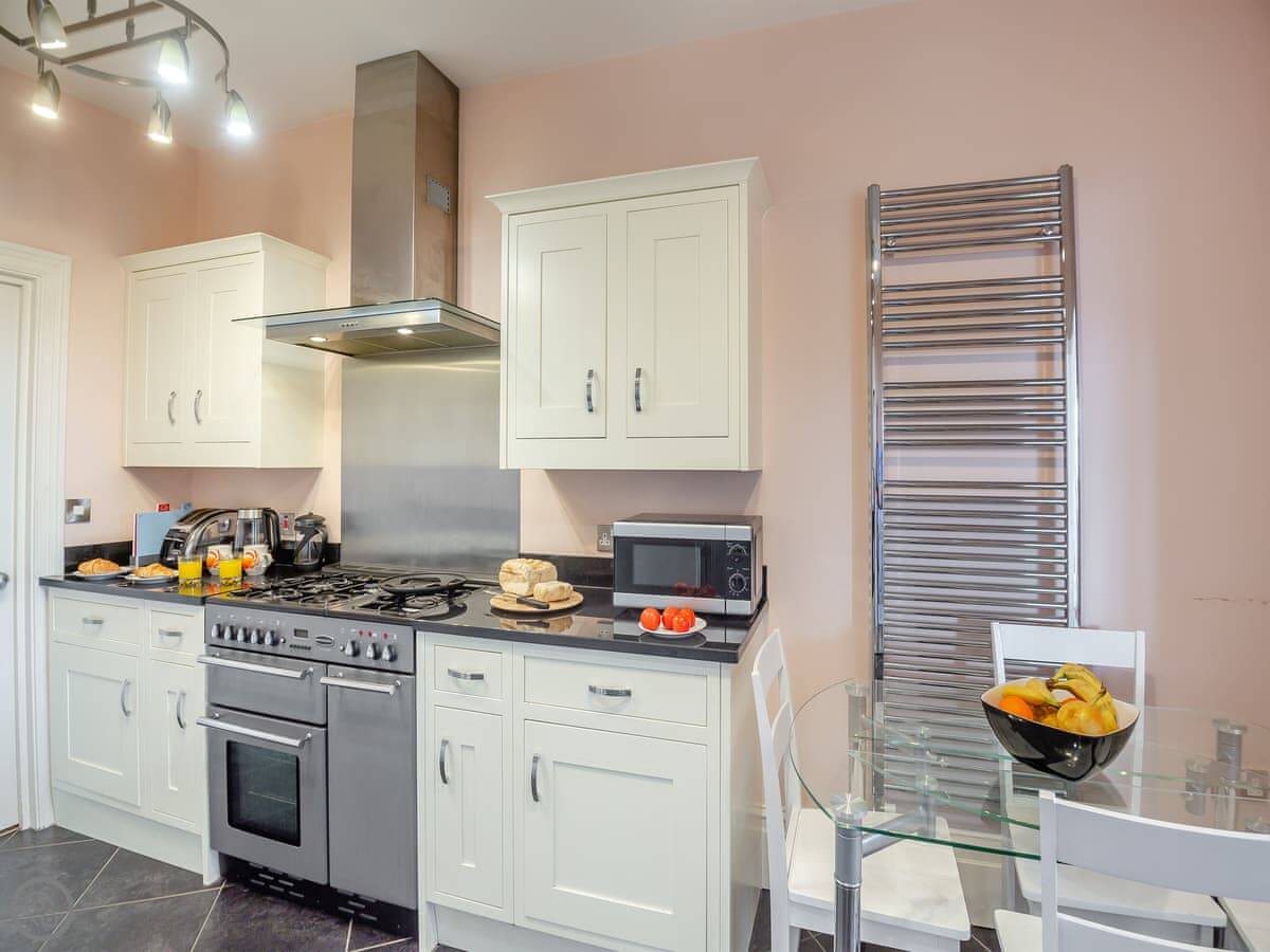 It sleeps four. Two bedrooms, two bathrooms. One bedroom is a king with its own shower, the other is a double, and there's a family bathroom too. It's got a 4 Star rating. It's comfortable.