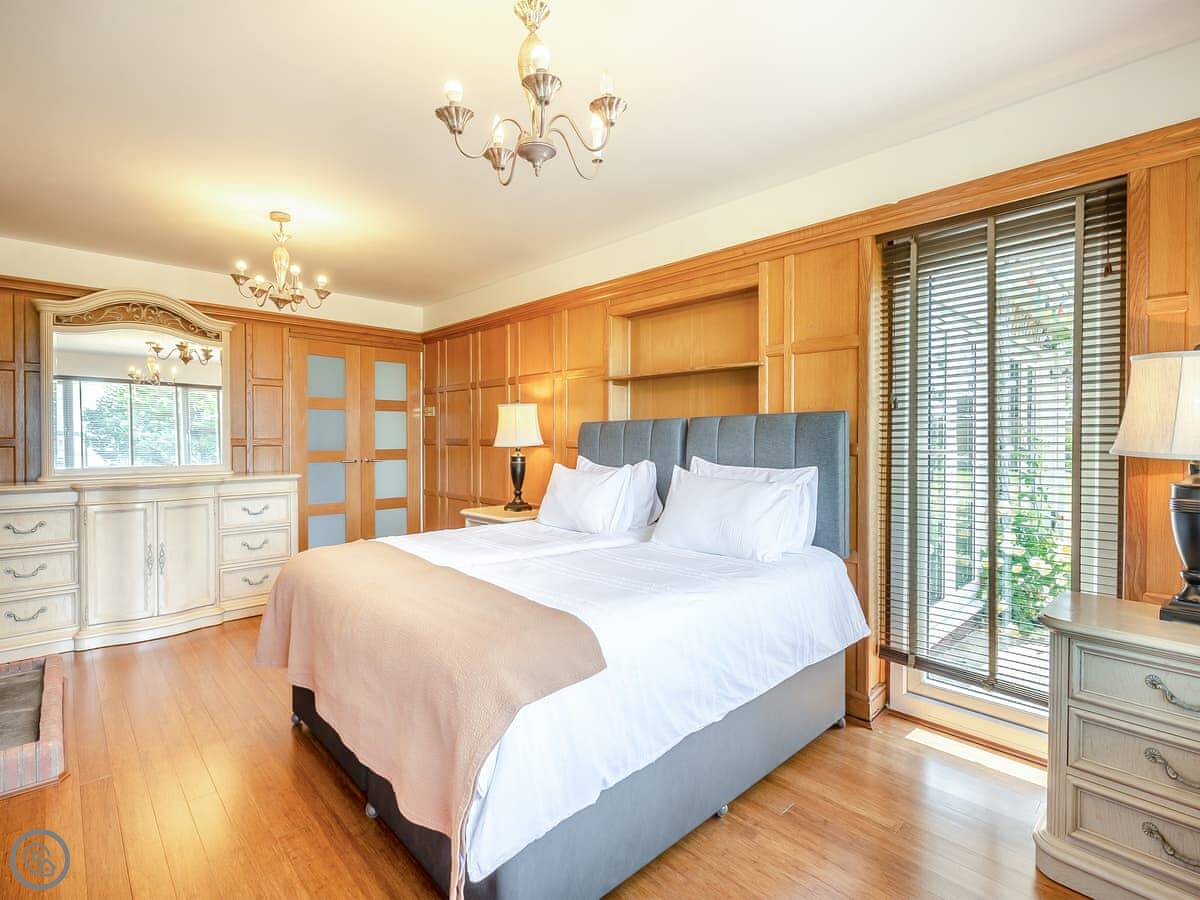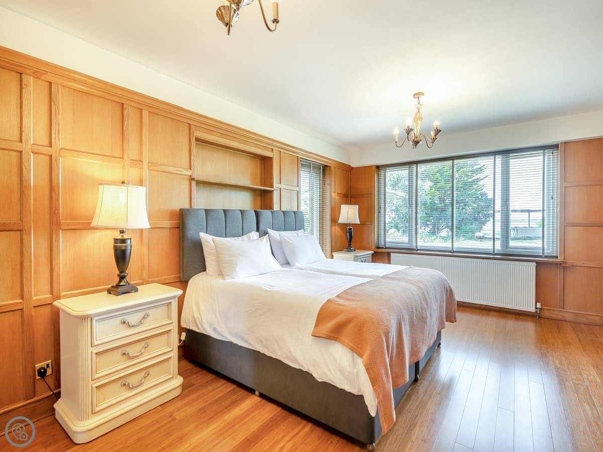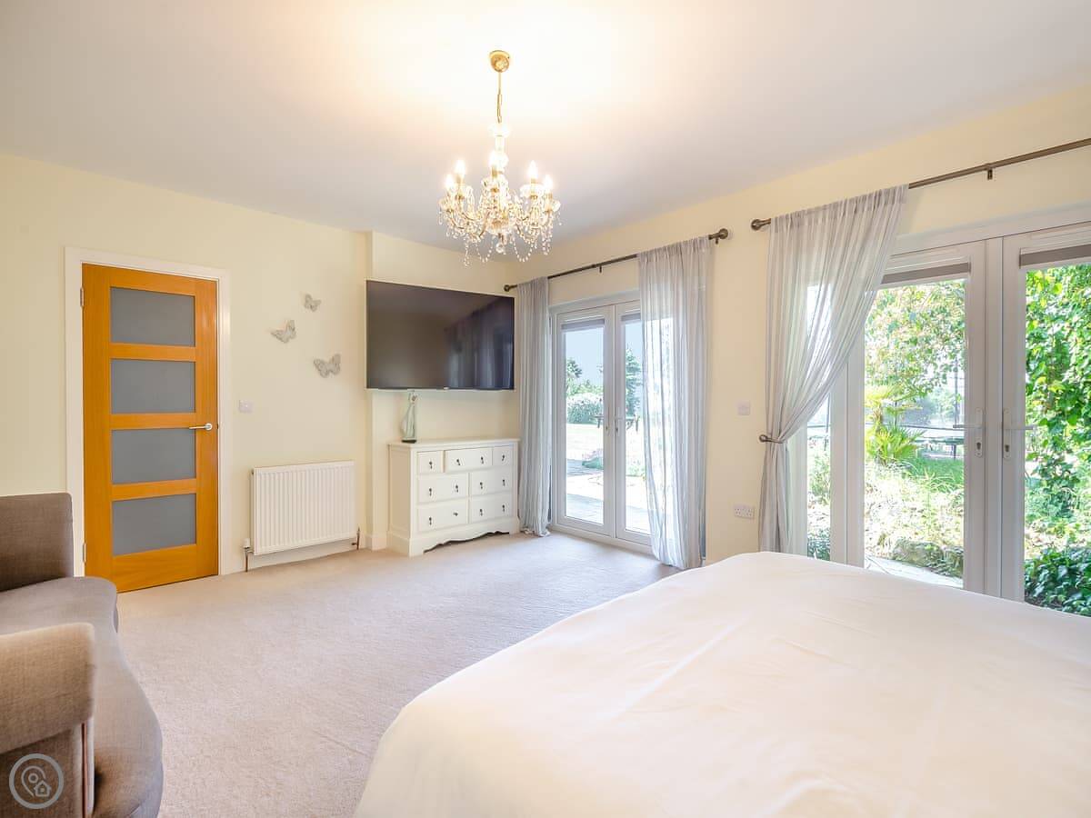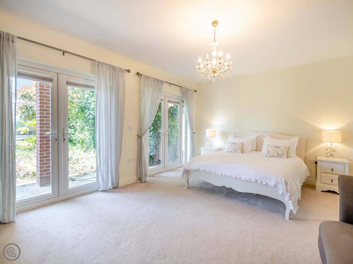 The house is bright and spacious inside. Some of the bedrooms are on the ground floor, and those have doors straight out to the garden, which is handy. The upstairs bedrooms have balconies looking out to sea. You can sit out there with a coffee.