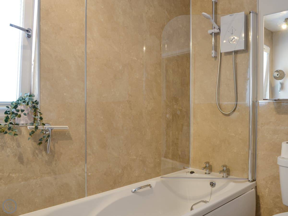 It's been refurbished, so it's in good order. It's got a 4 Star rating. There's a wood burning stove for colder nights. The garden is enclosed and gets the sun, so it's a nice spot to sit out.