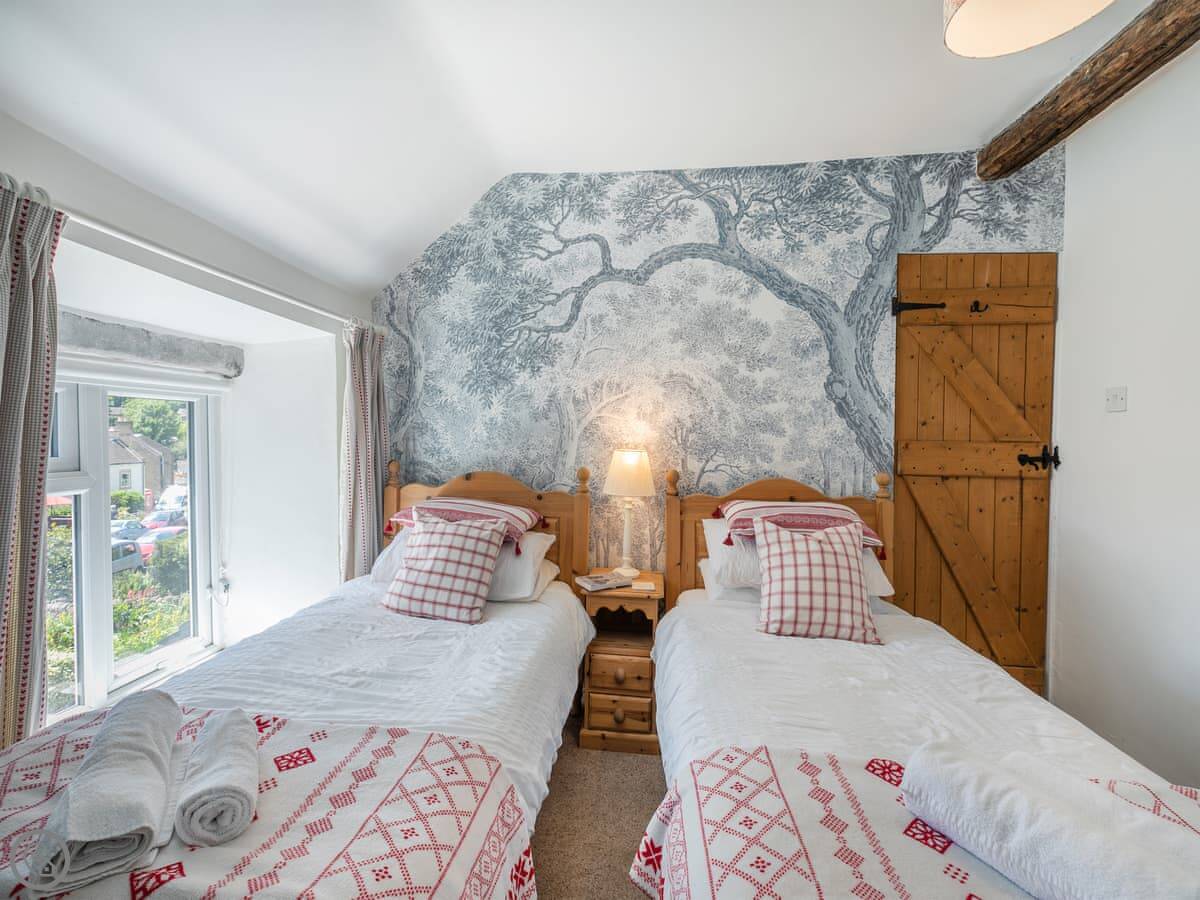 Pine Door is an old cottage in Eyam. It’s about 400 years old. You get two bedrooms and it sleeps four. It has a 4-star rating. It’s been done up but it’s still very much an old cottage.
