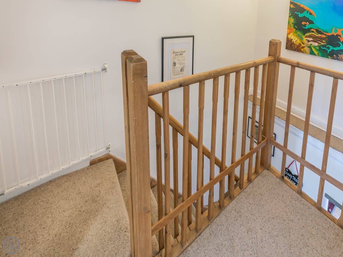 The cottage has wifi, a TV, a washing machine, and a dishwasher. Bedding and towels are included. We accept up to two dogs. There’s a stairgate at the bottom of the stairs if you need it.
