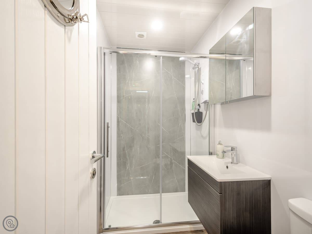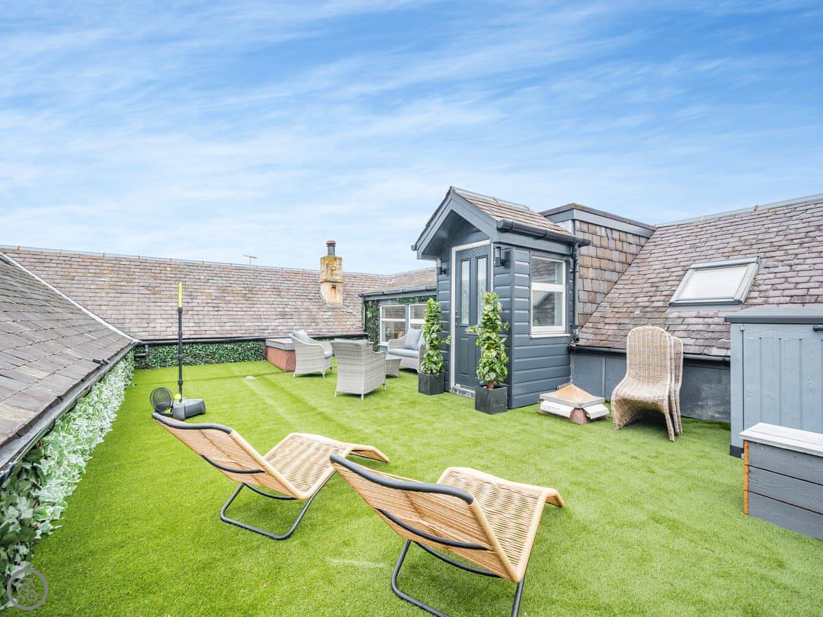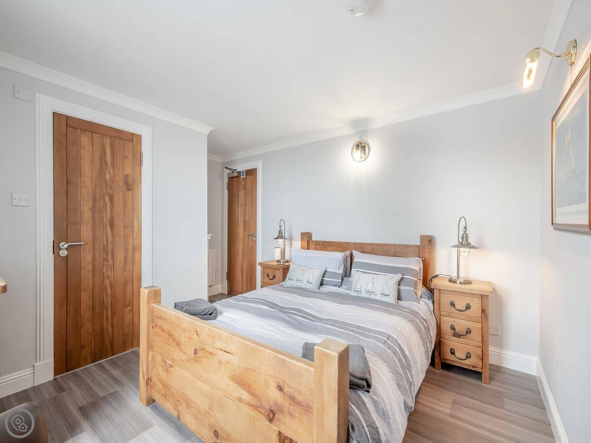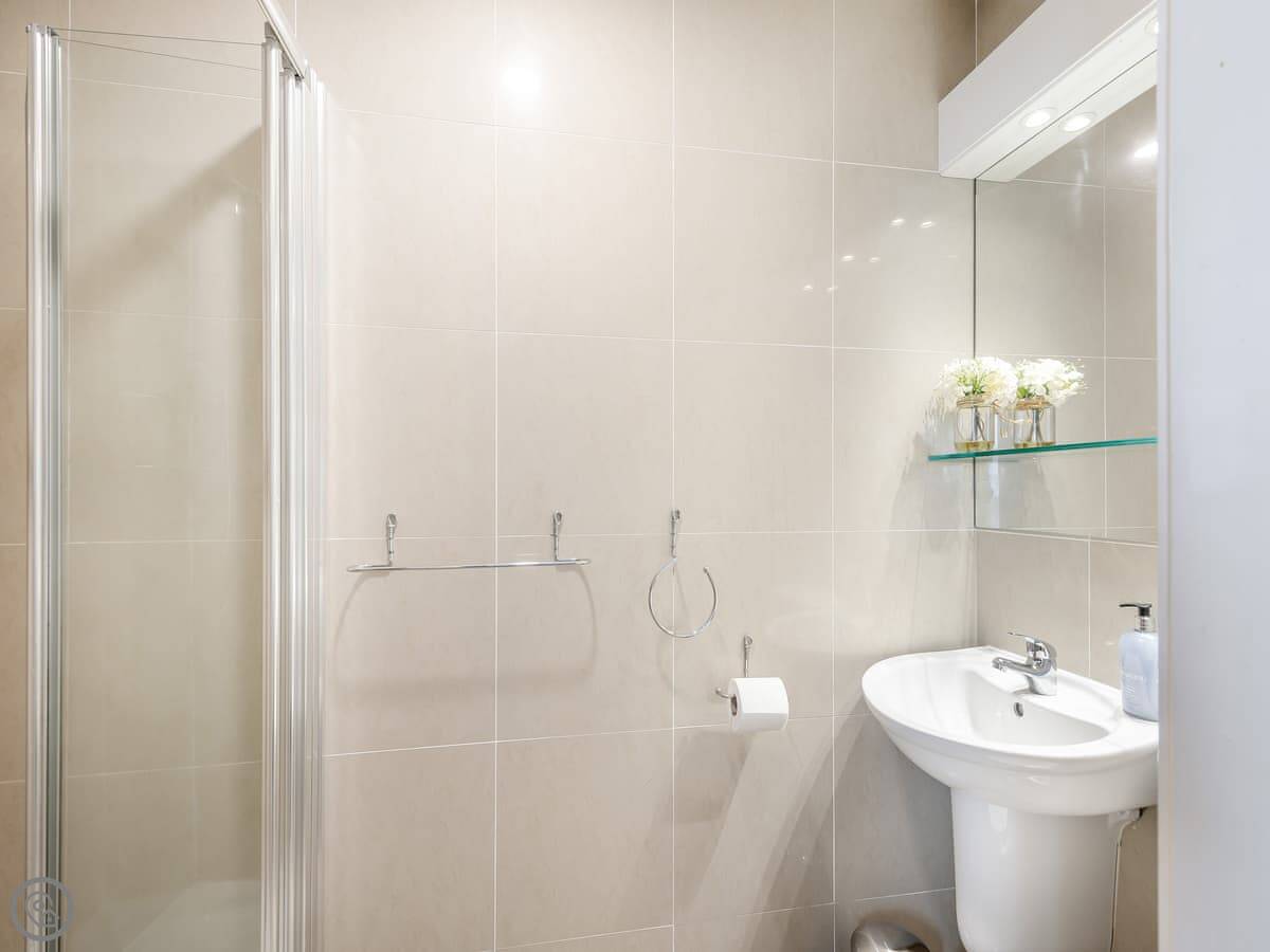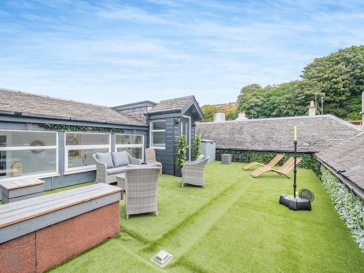 It sleeps six. There are three bedrooms and one bathroom. It's got a 5 Star rating, which means it's well finished and comfortable. The stairs up to the flat are stone and a bit narrow, so watch your step.