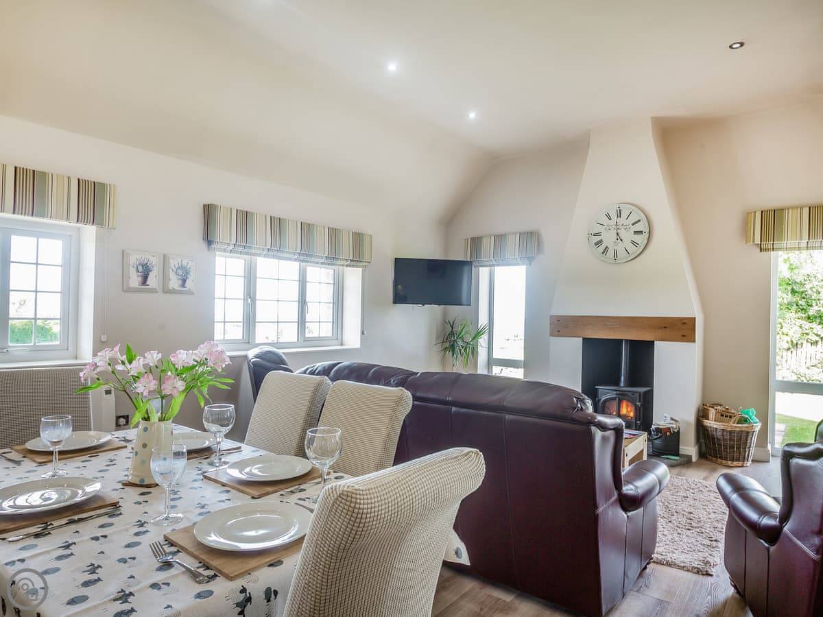 Facilities wise: there's parking right there. Wifi, TV, washing machine, dishwasher. Has a woodburner. Bedding and towels are included. There's a garden with a patio. Sorry, no pets.