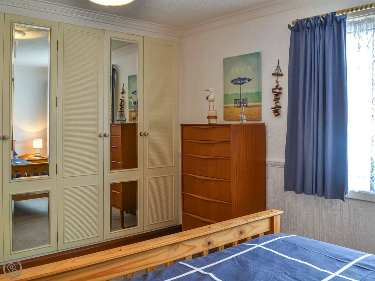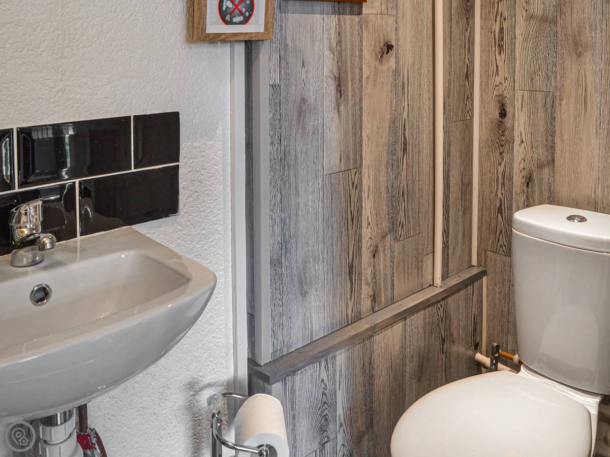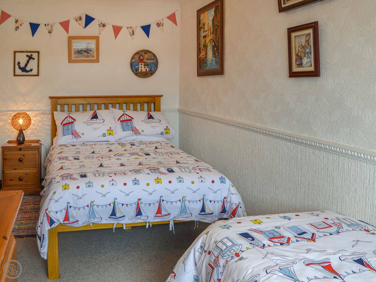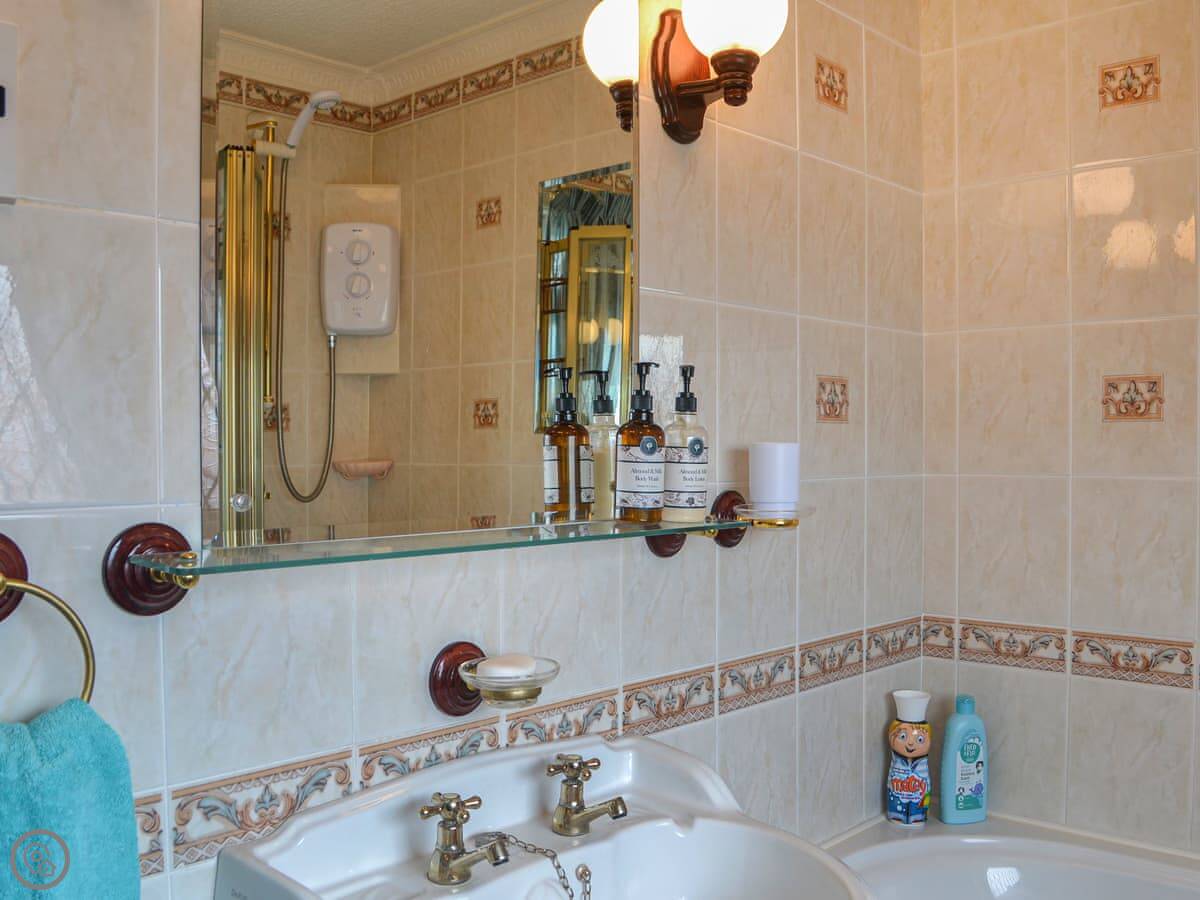There are two bedrooms upstairs. One has a king size bed. The other has a smaller double and a single bed in it, which works well if you've got kids. They share a bathroom with a shower over the bath.