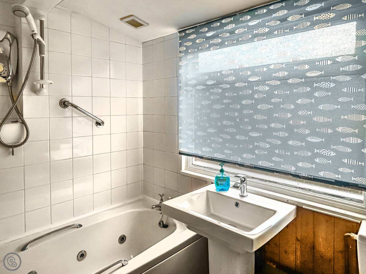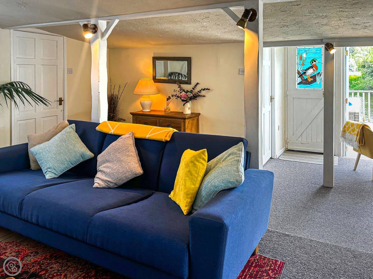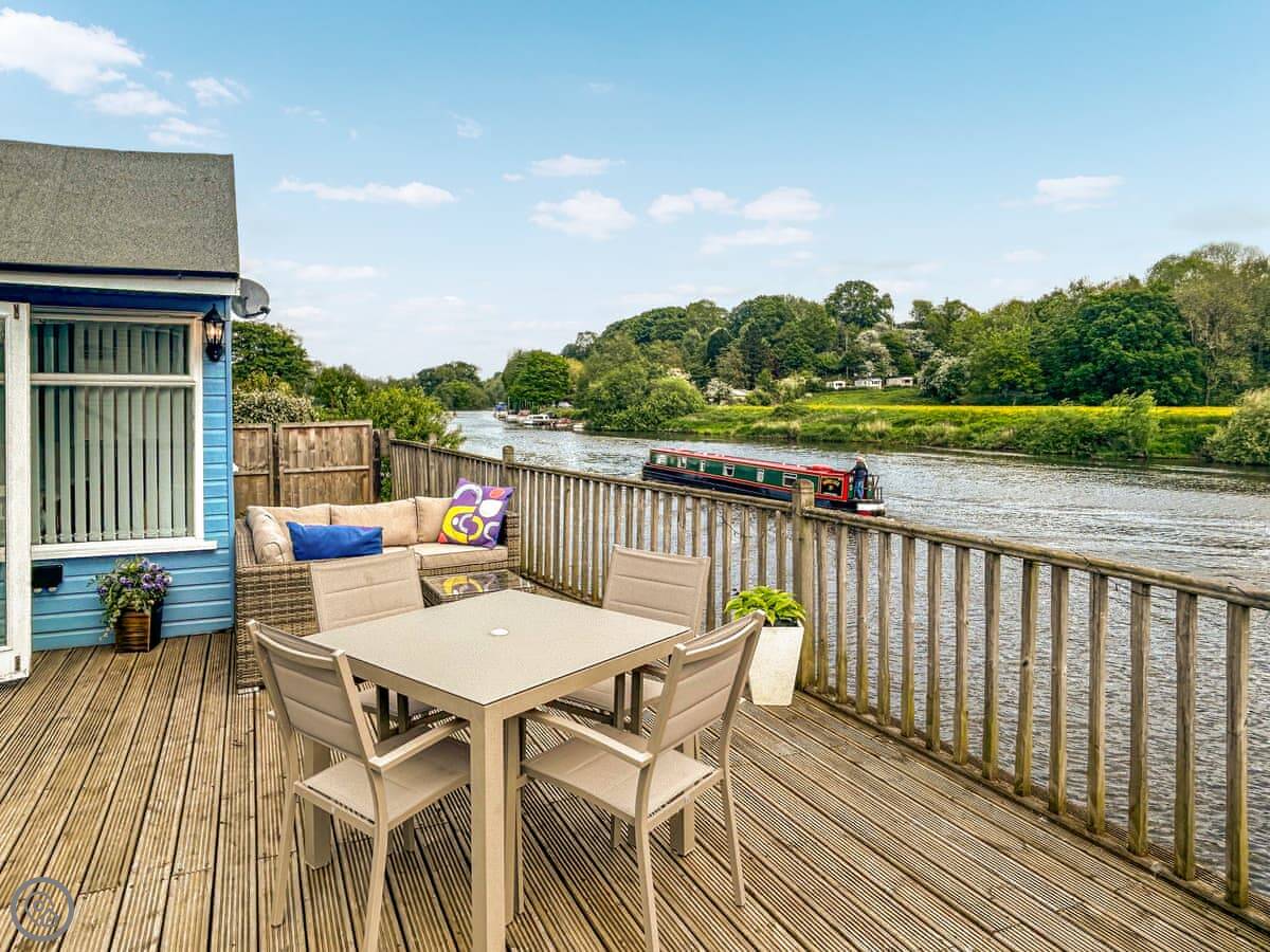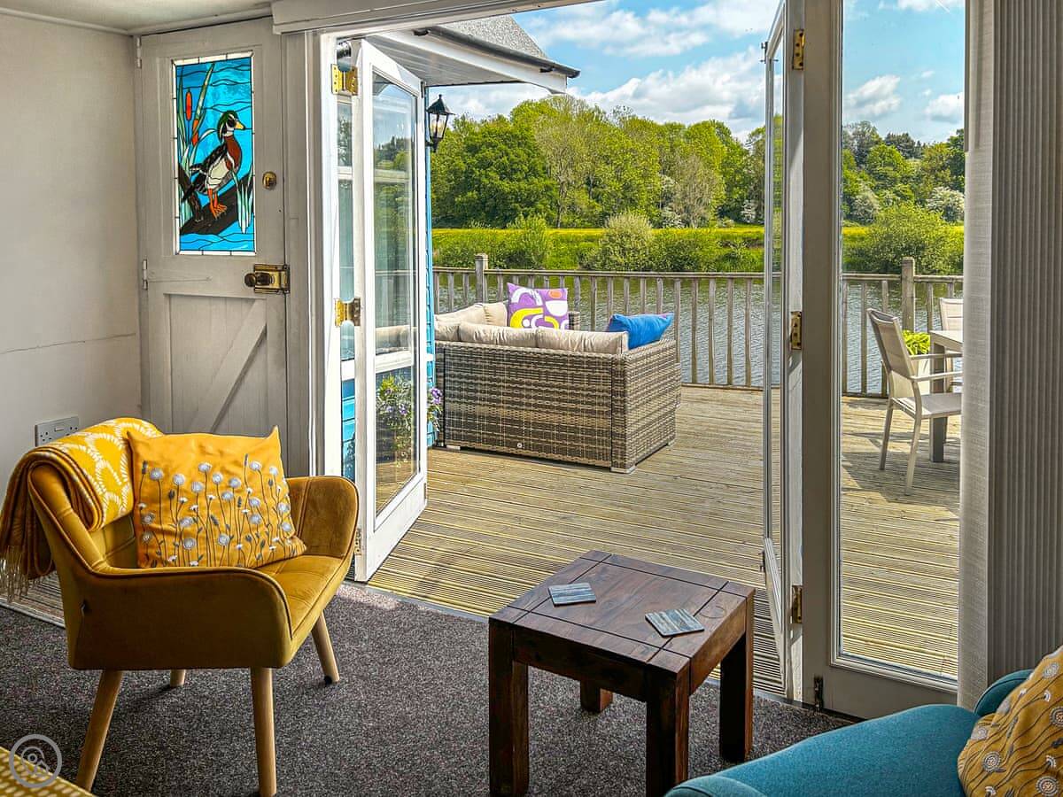 Outside, there's a private terrace with a couple of seating areas. There's a slipway next to the property if you want to bring a canoe or paddleboard, or just fish.
