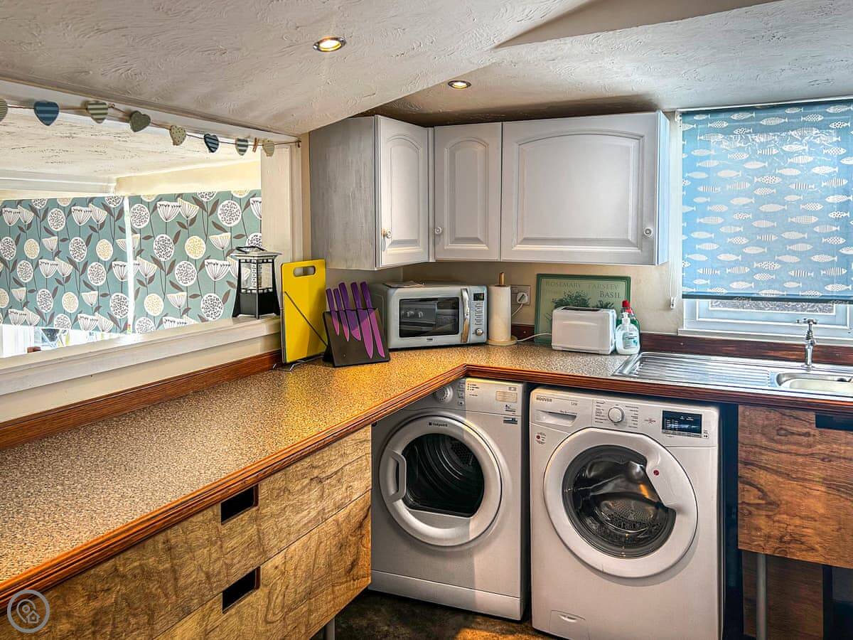 For facilities, you've got a washing machine, dishwasher, TV, and parking. All bedding and towels are included. No pets.