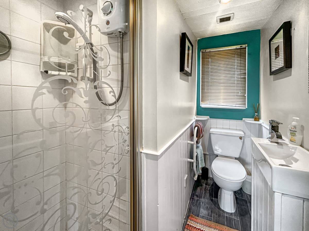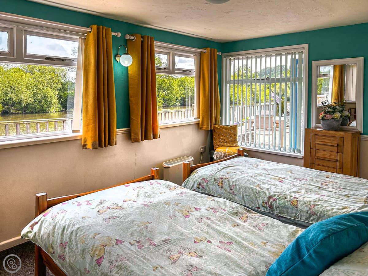 It sleeps five. There are two bedrooms and two bathrooms. One bedroom is a twin with an en-suite shower, the other is a double. The sofas in the living area also fold out into a bed. It's got a 4 Star rating. It's comfortable and well looked after.