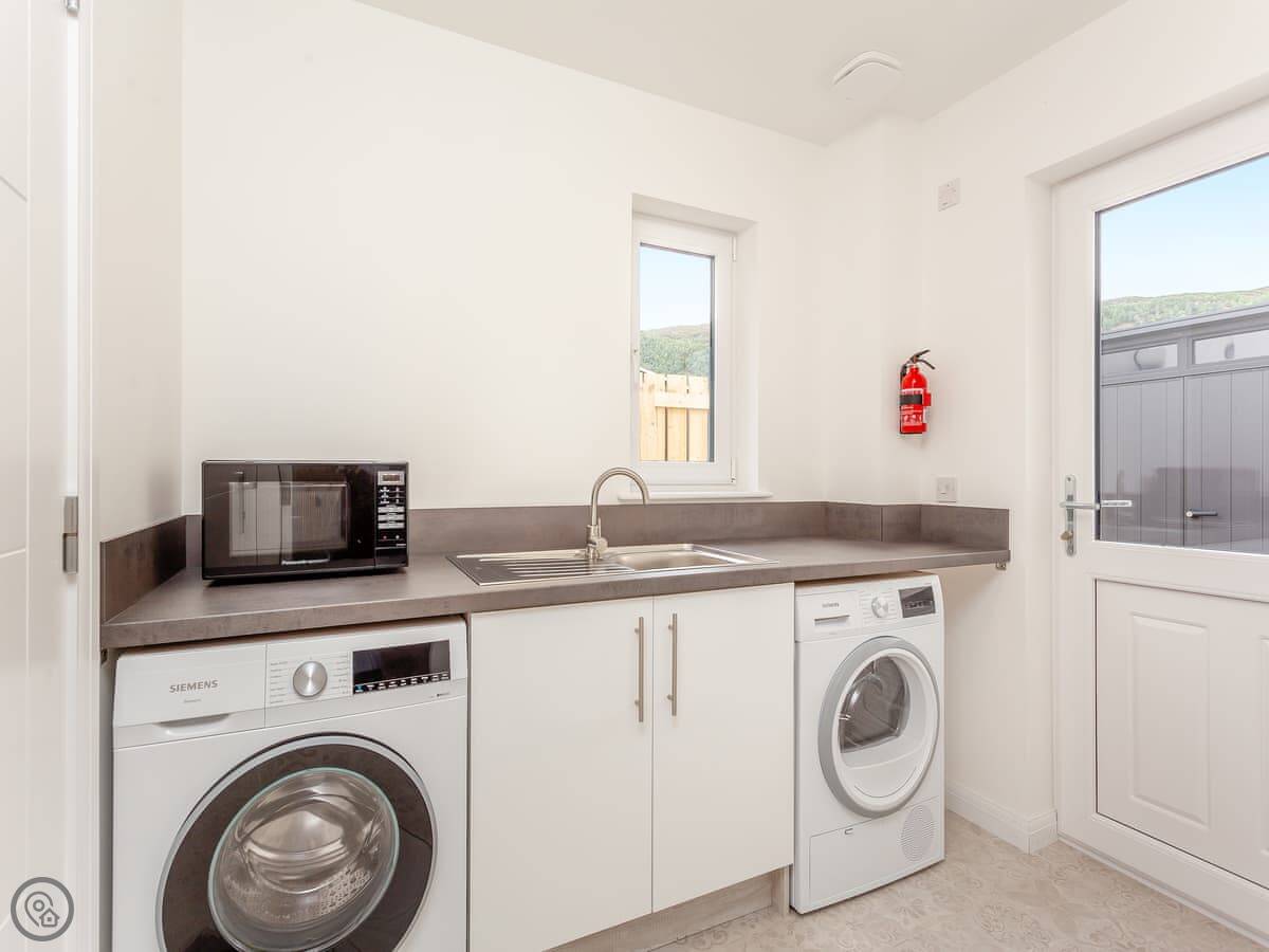 The living room has a Smart TV. The kitchen has what you'd need. There's a utility room with a washer and dryer. Parking is on site.