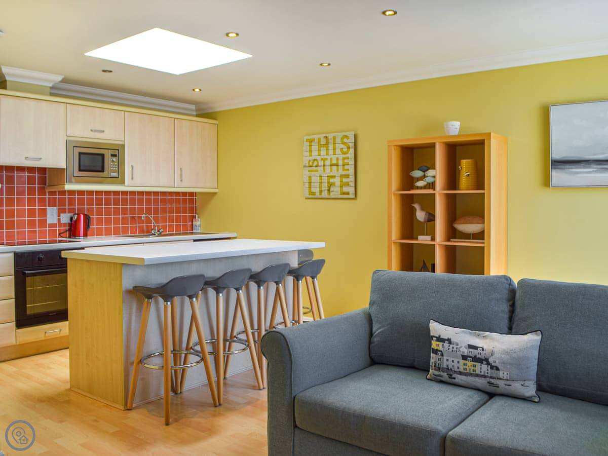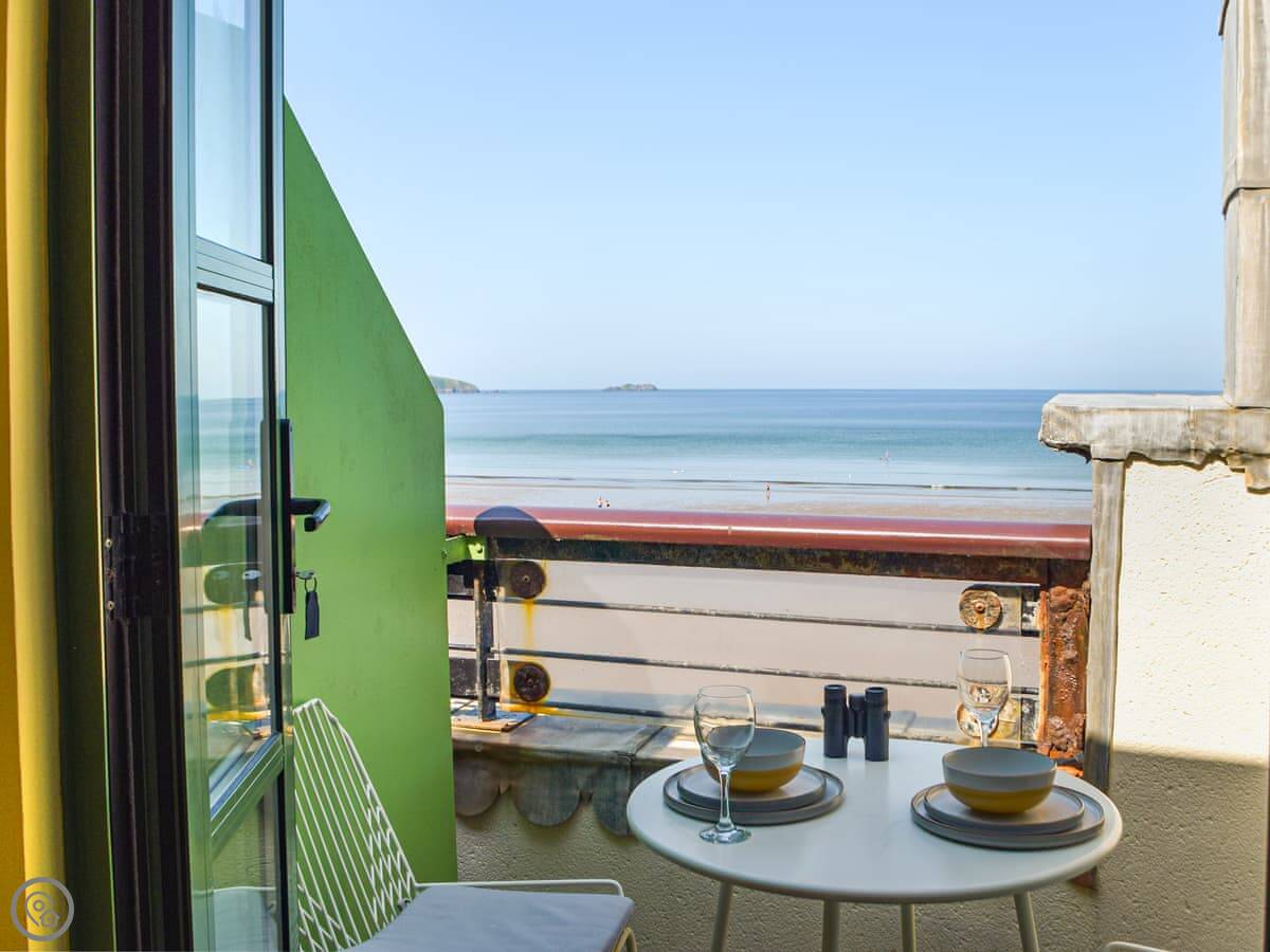 This is St Brides Bay View. It’s an apartment in Broad Haven, right on the seafront. The main thing is the view. You get a proper, unobstructed look at St Brides Bay from the living area and the balcony.