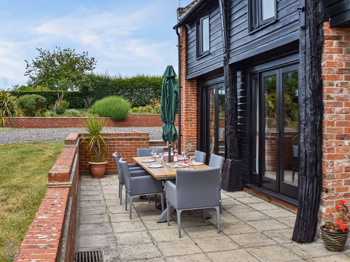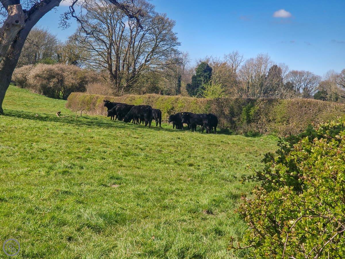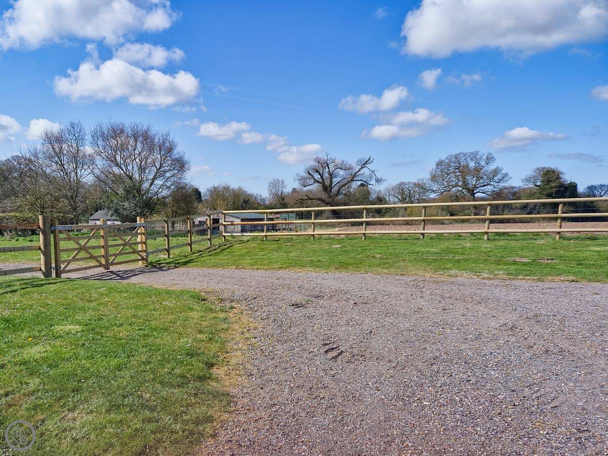 The garden is enclosed, which is good if you have dogs. You can have up to two pets. The view from the garden is just fields. No other houses in the way.