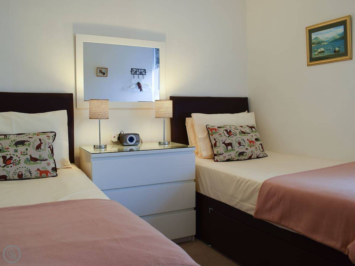 It sleeps four. Two bedrooms, and two bathrooms, which is handy. It's a 4 Star place, so it's been done up nicely. The stairs are typical for a cottage, so you need to watch your head a bit.