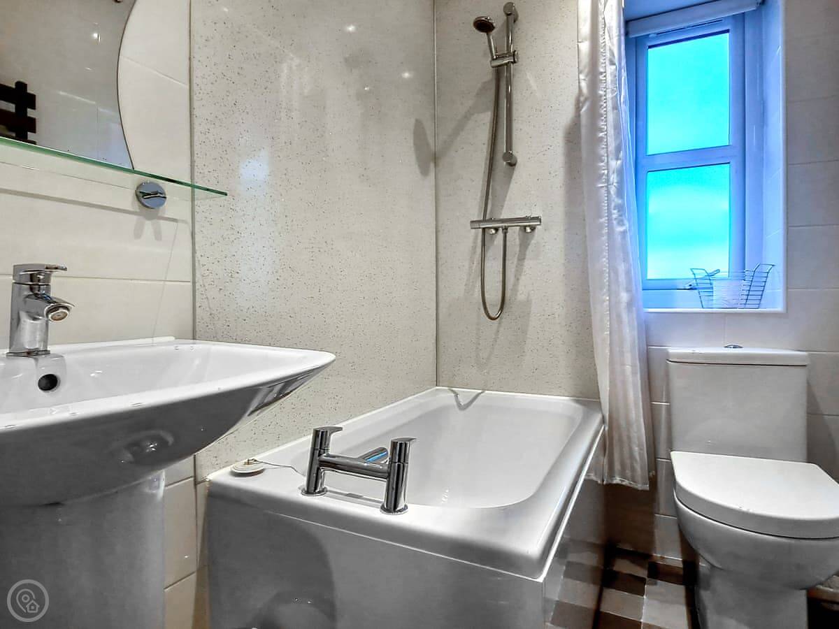 There's a decent-sized yard out the back, surrounded by slate walls. It's private, you can sit out there. It's more of a yard than a garden.