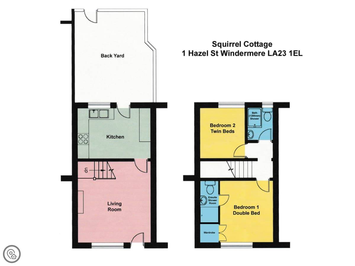 Squirrel Cottage is in Windermere, near the top of the high street. It's down one of the side streets, so it's quiet. You can get to all the shops and pubs in about a minute.