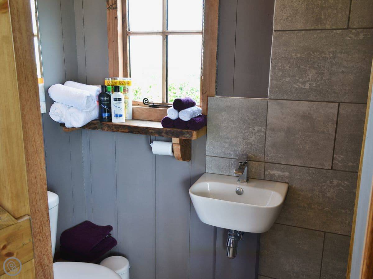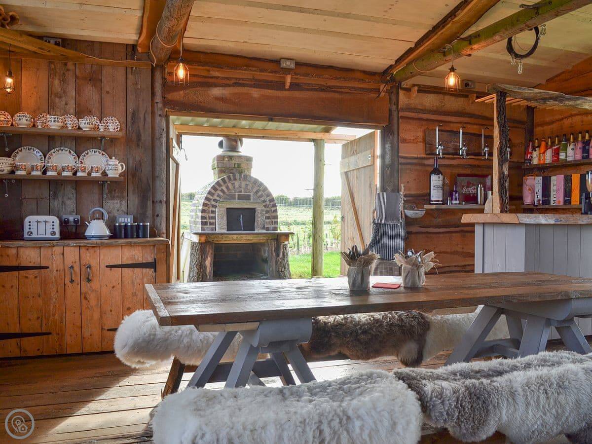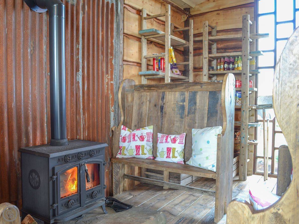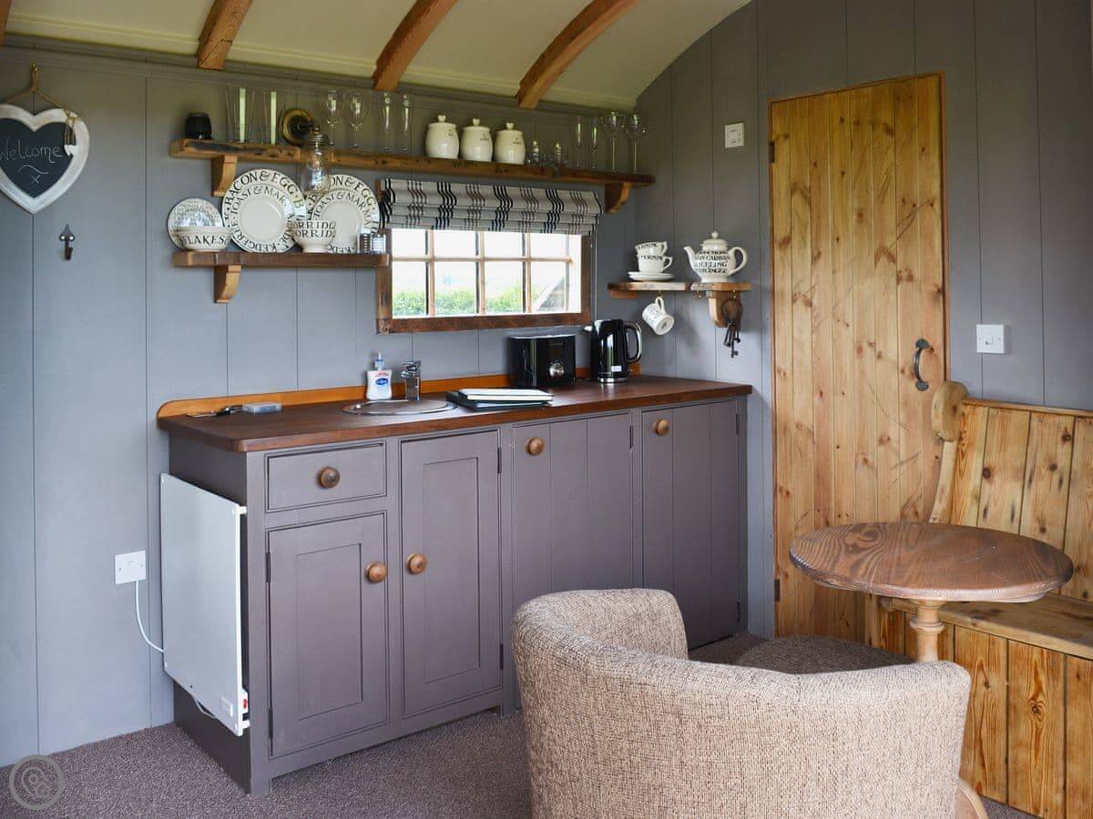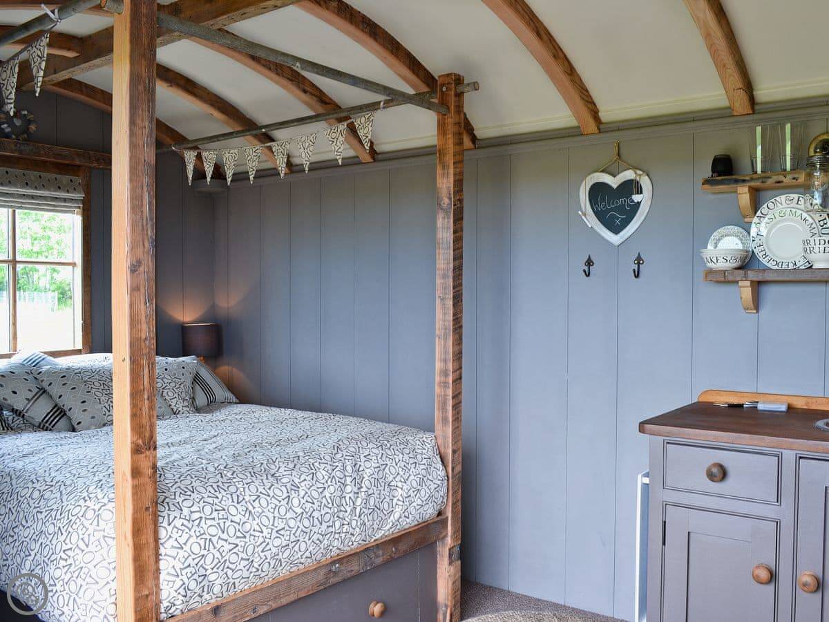 It's a proper hut on wheels, but we've fixed it in place. There's one room with a double bed and an en-suite shower. It's open plan, so the living space and kitchen area are all together. It's clean and comfortable. The ceiling is a bit low in places if you're tall.