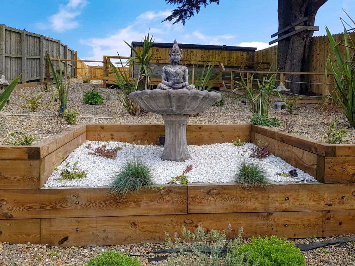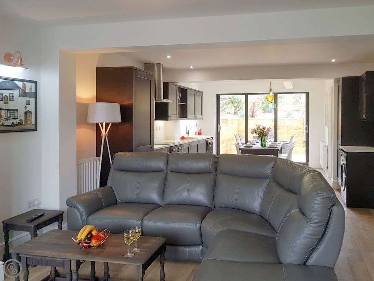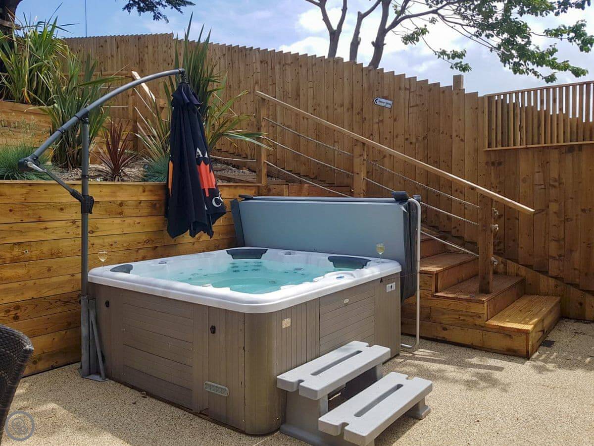 The garden is enclosed and private. It's got a hot tub, which people seem to like. The view from the raised terrace is decent, you can see across to Whitby.
