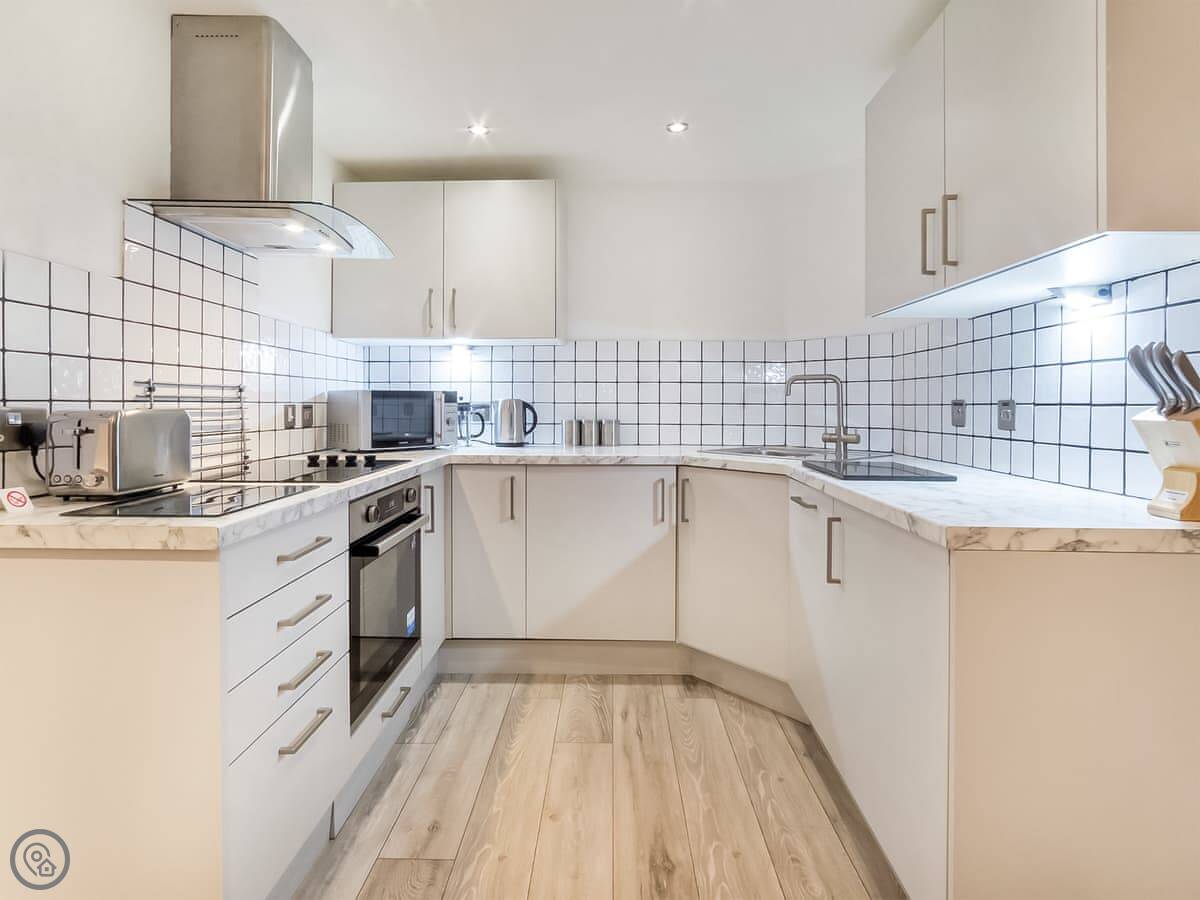 In terms of facilities, you've got a washing machine, dishwasher, WiFi, and TV. Bedding and towels are included. There's no garden, it's a city apartment. No pets.