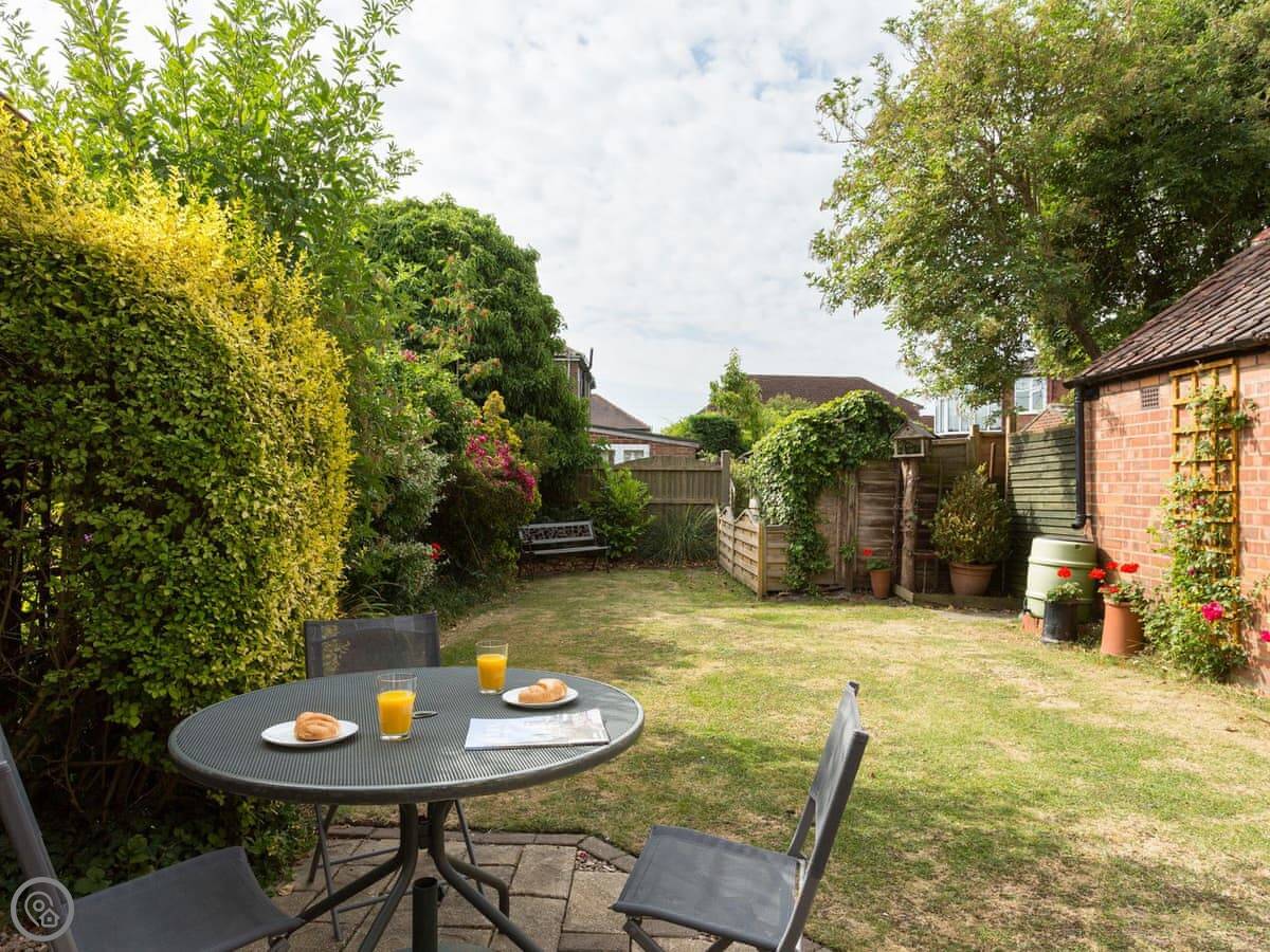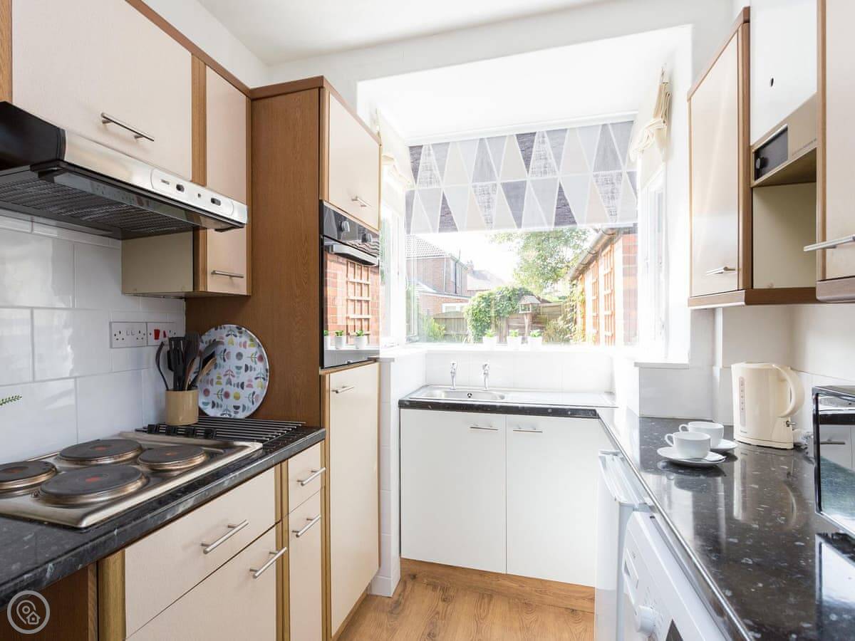The living room is at the back of the house and leads out to the garden. The garden is enclosed, with a patio and some seating. The kitchen is fine for cooking in. It has a dishwasher and a washing machine.