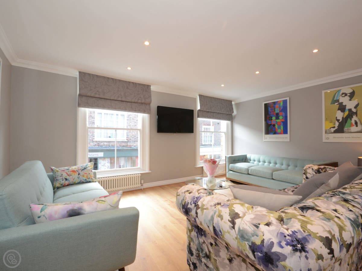 Fossgate is an apartment in York city centre. It's a duplex, so the living area is on the first floor and the bedrooms are up another flight on the second. It sleeps six.