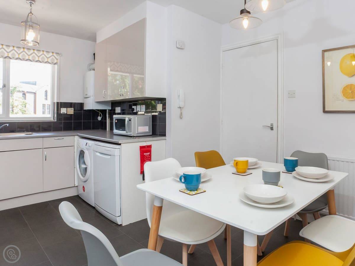 For facilities, it's all there. Washing machine, dishwasher, WiFi. Bedding and towels are included. No pets, sorry.