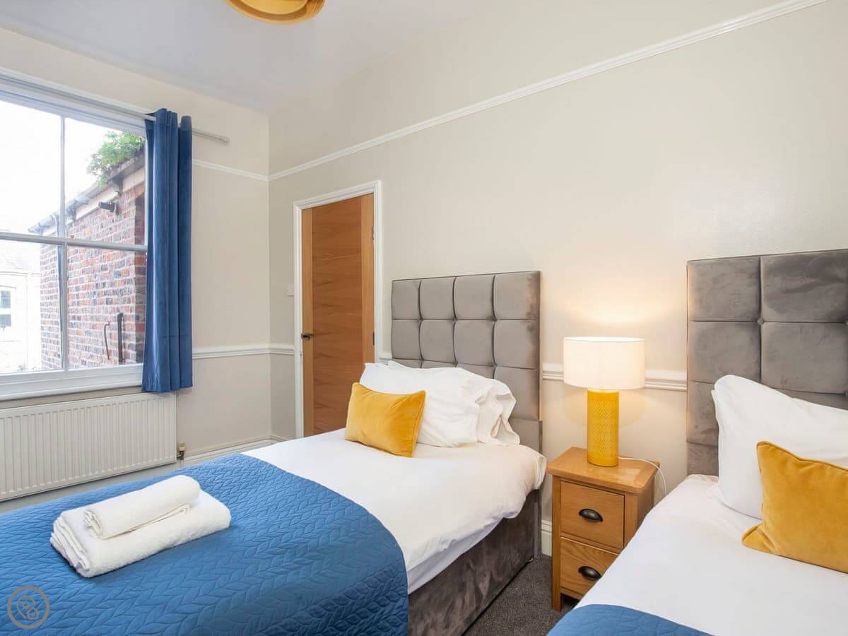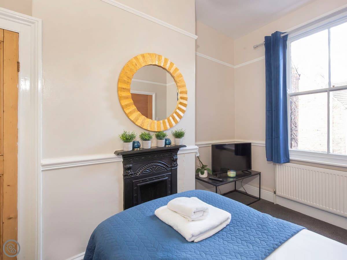 You're on the edge of the city centre. It's a proper residential street, but you can walk into the middle of York in a quarter of an hour. There's a pub about three minutes away that does food. On-site parking for one car is included, which is a real help in York.