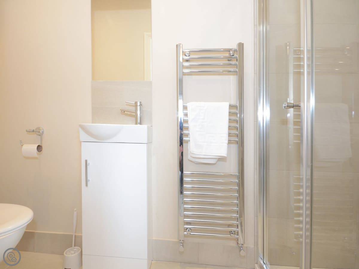 It sleeps eight people. Four bedrooms, each one has its own bathroom. That's handy if you're a group. It's got a 4 Star rating, so it's well finished and comfortable.