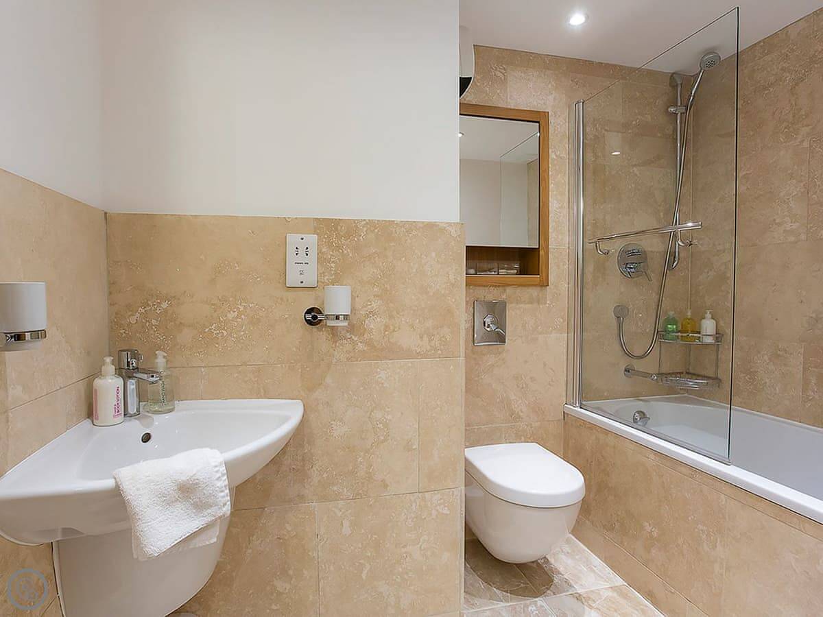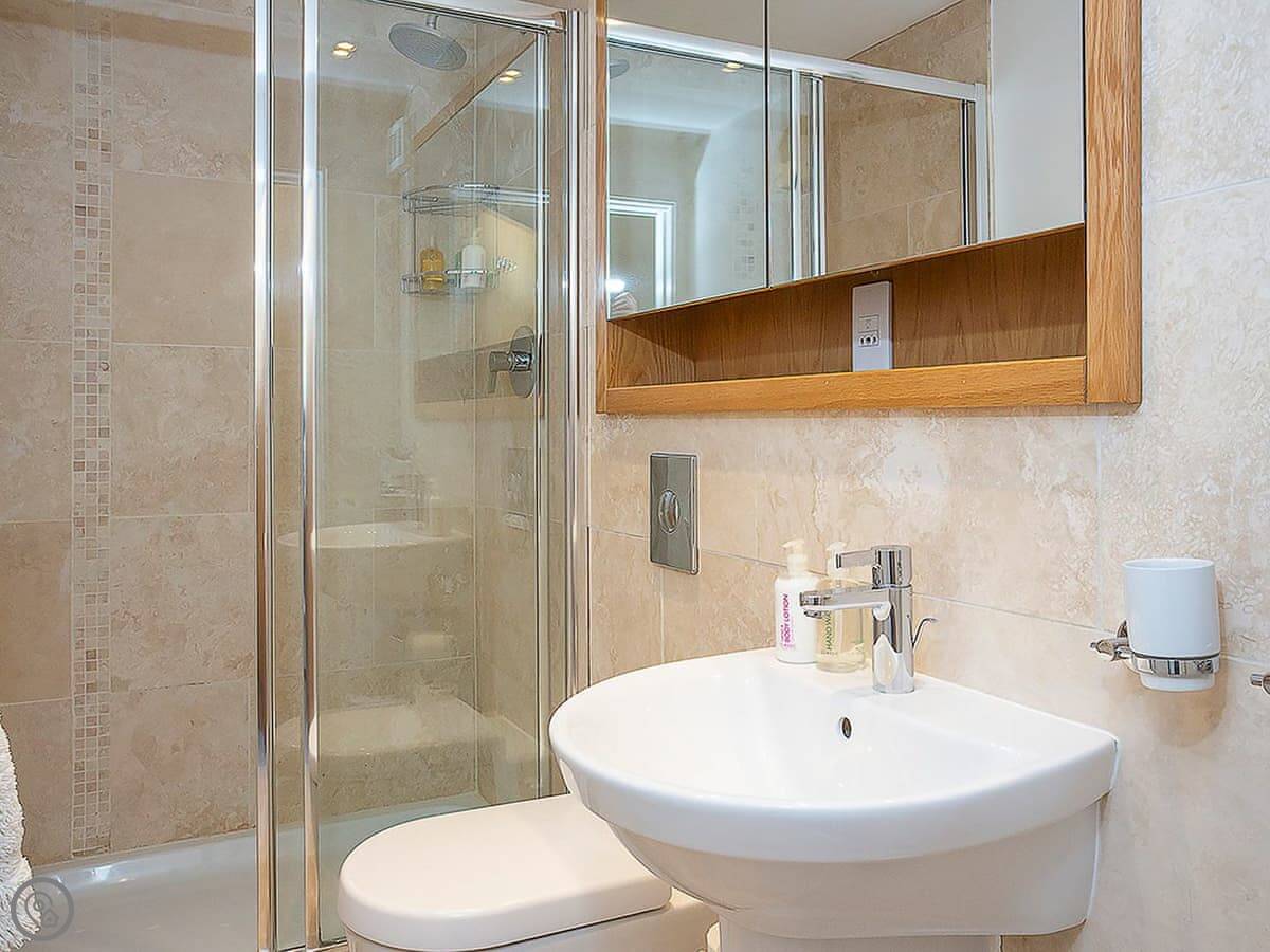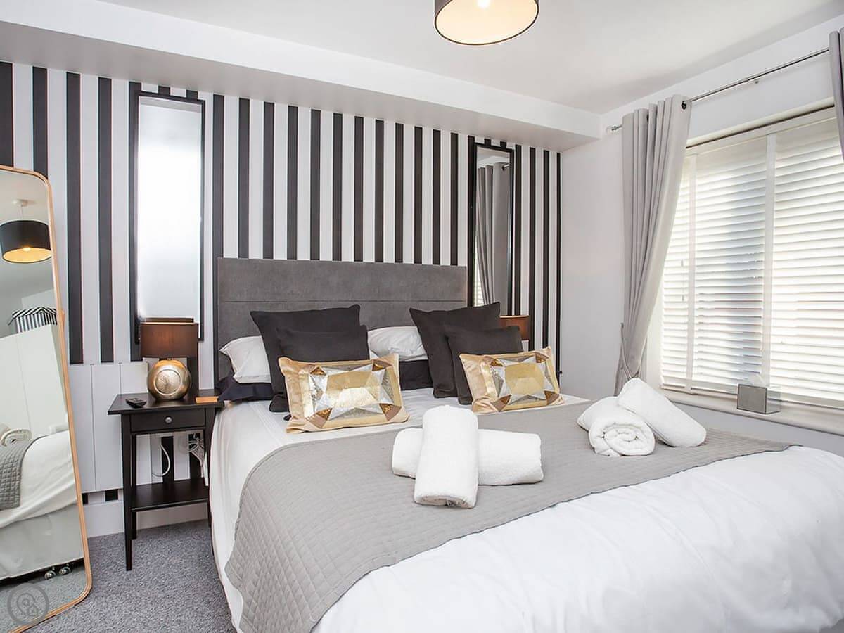 It sleeps four. Two bedrooms, two bathrooms. The main bedroom has an en-suite shower. The second bathroom has a bath with a shower over it. It has a 4 Star rating, so it's well equipped and comfortable.