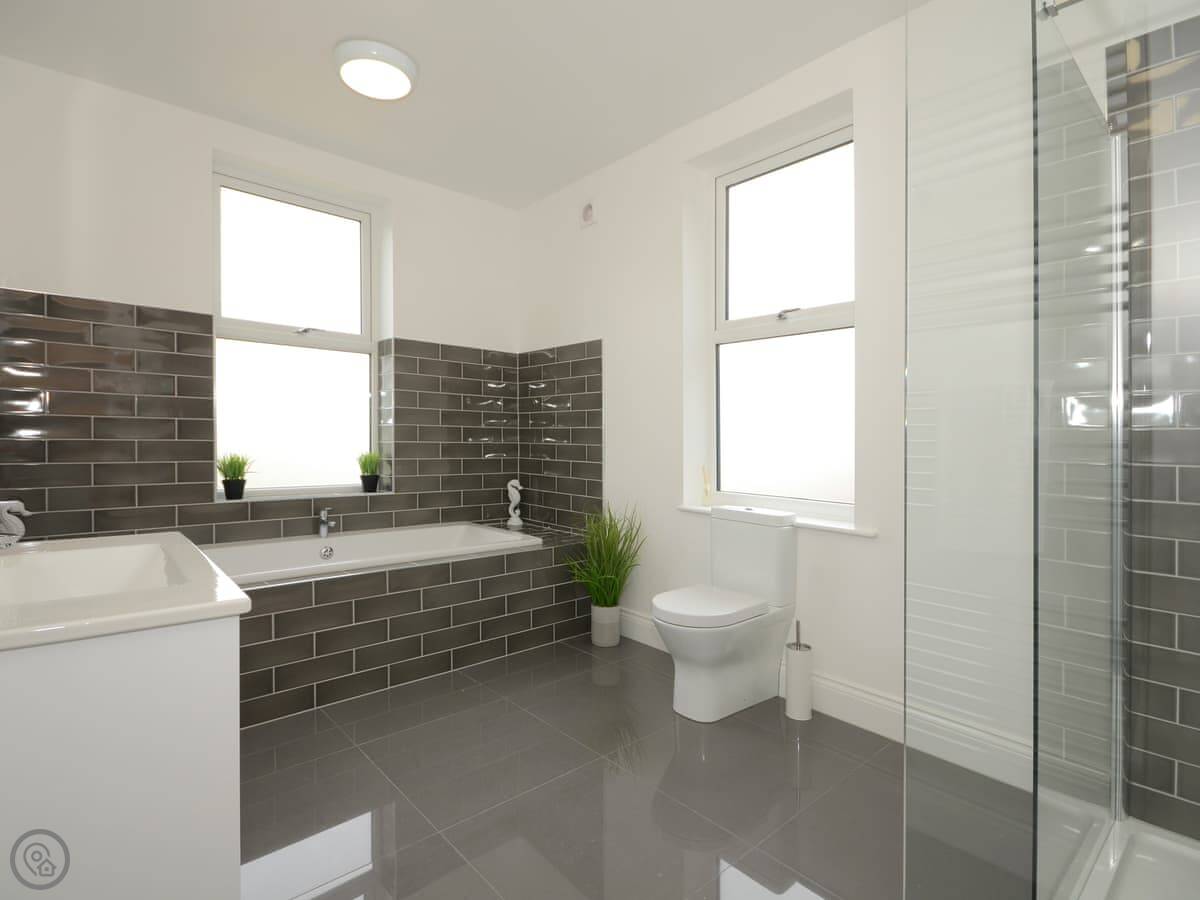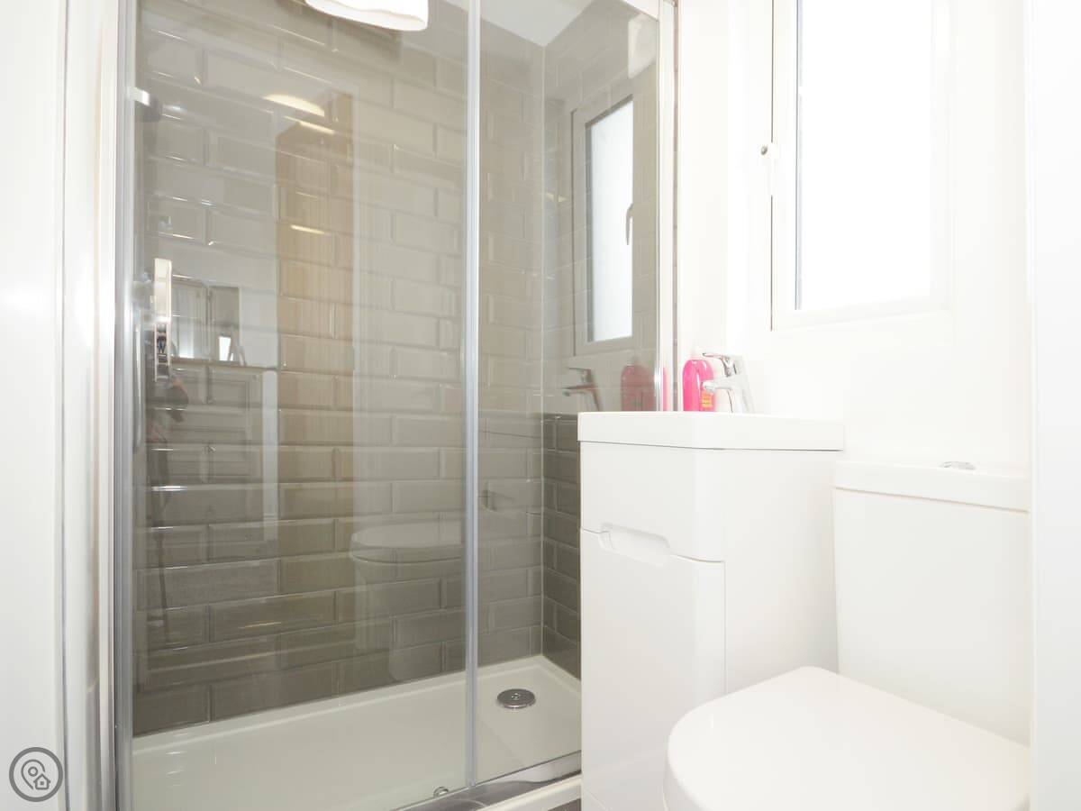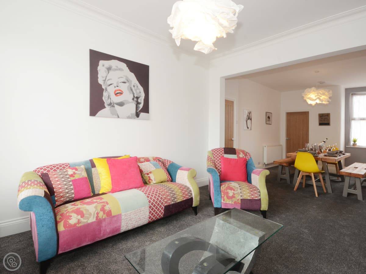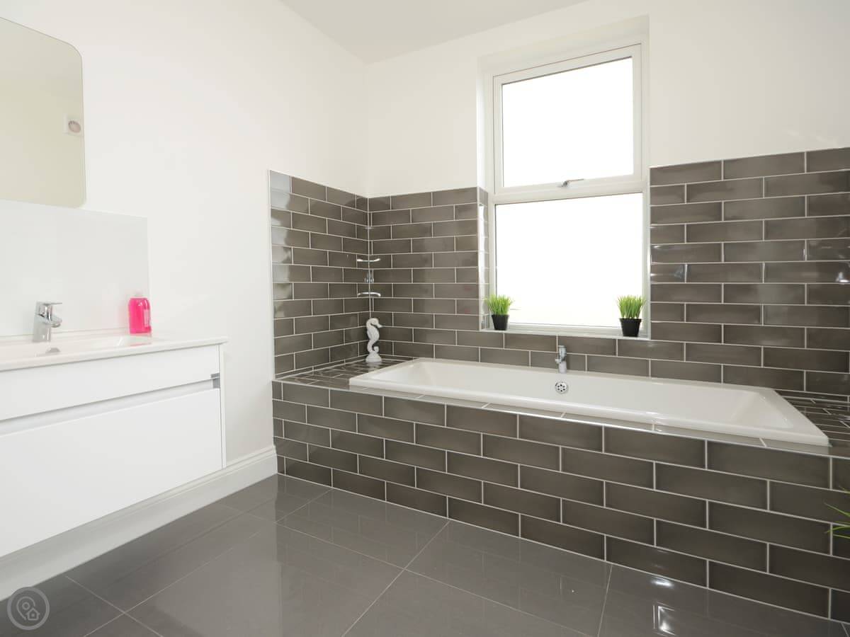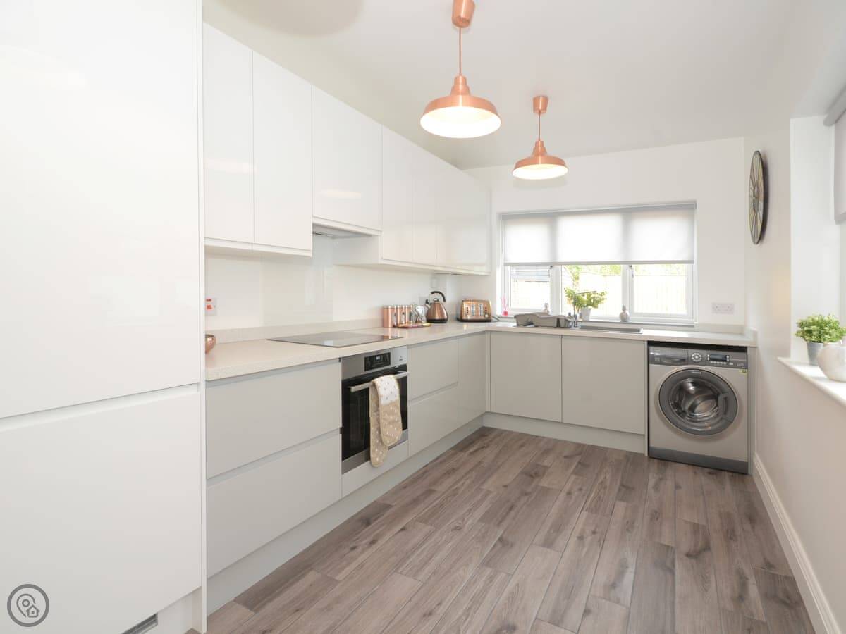 It sleeps seven. There are three bedrooms. Two have super king size beds and one has a king size. One of the super kings can be split into two singles if you need it. There are two bathrooms, one with a walk-in shower and a sunken bath, and an ensuite shower in the top floor bedroom.