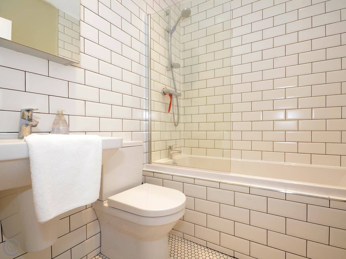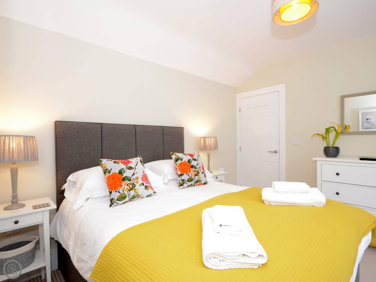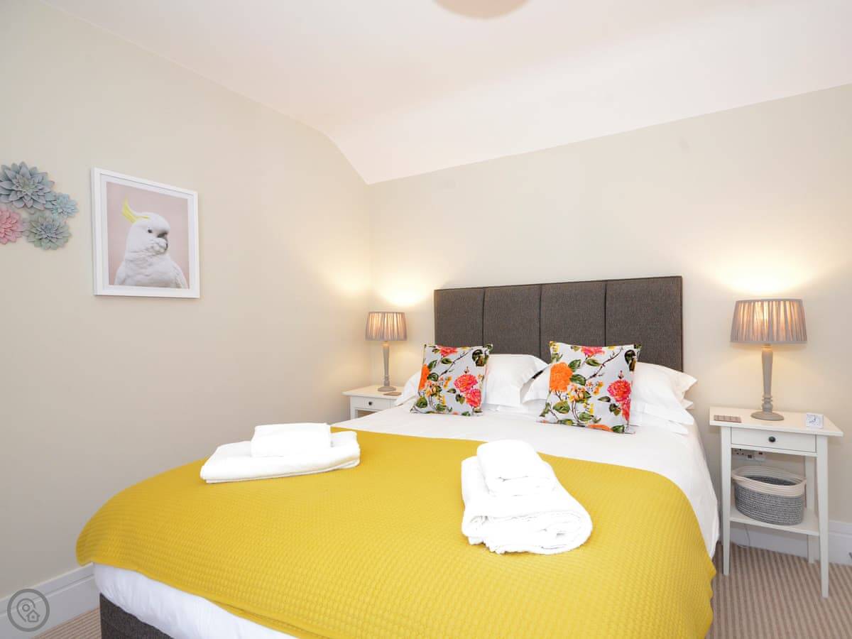 It's a detached, two-bedroom house. It sleeps four, two in a king bed and two in a double. There's one bathroom with a shower over the bath.
