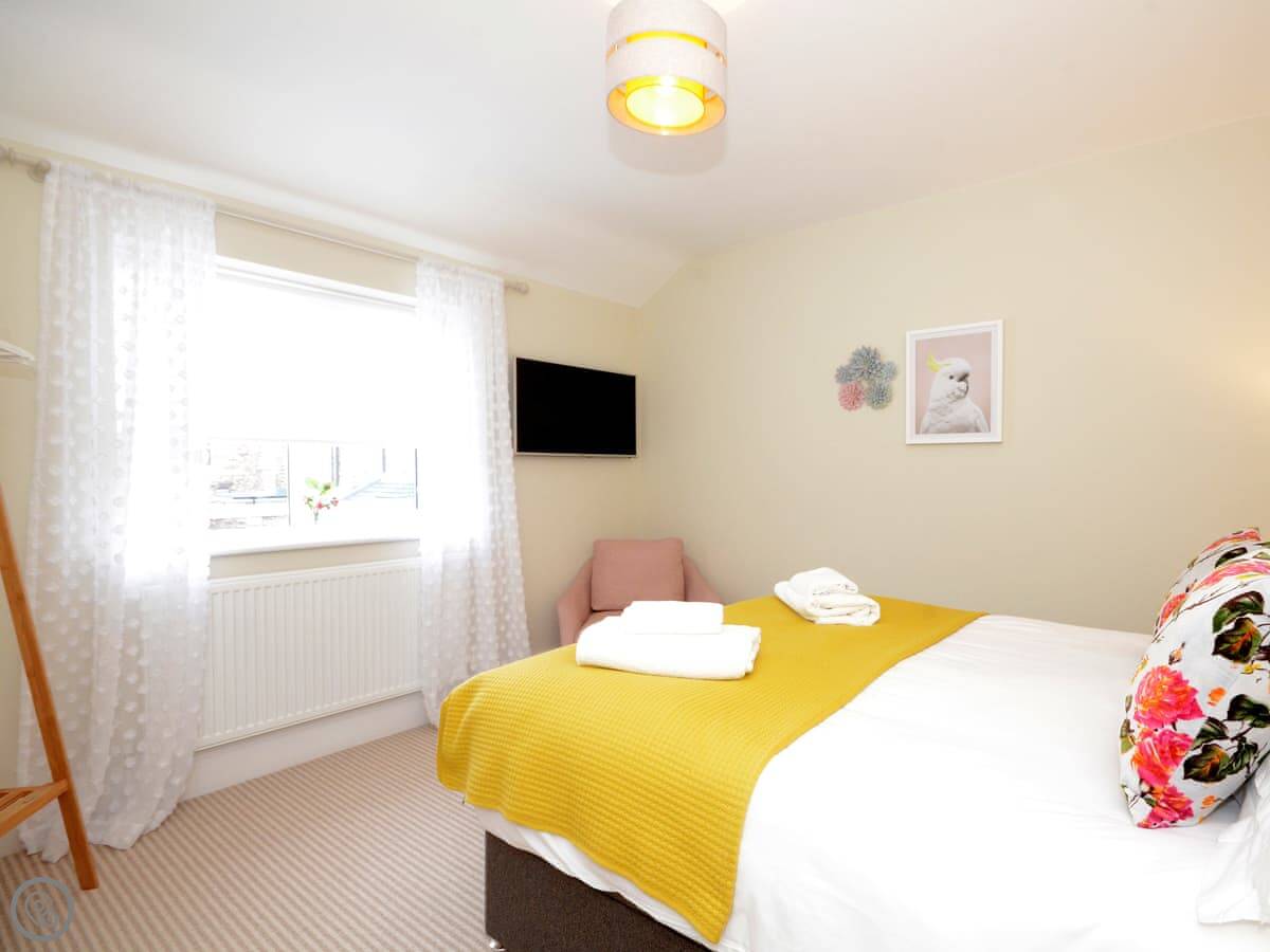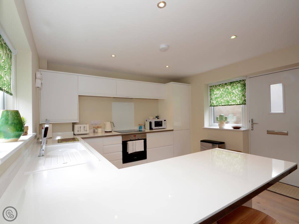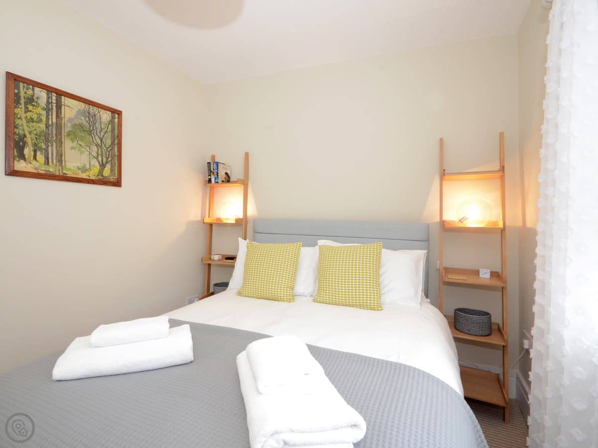 It's a detached, two-bedroom house. It sleeps four, two in a king bed and two in a double. There's one bathroom with a shower over the bath.