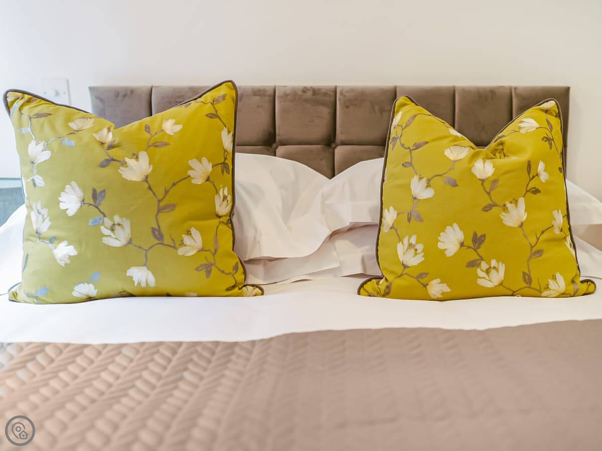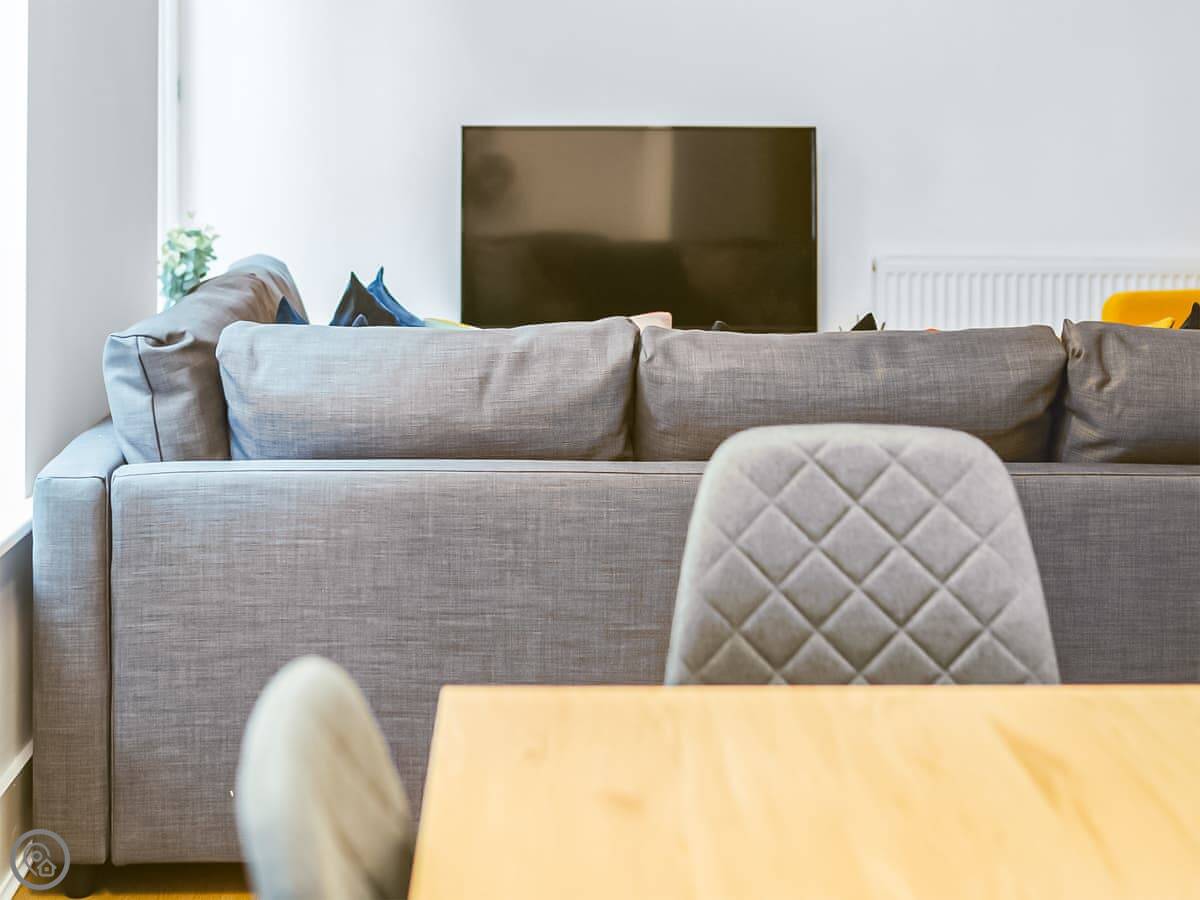 It sleeps six. Two bedrooms and one bathroom. The main bedroom has a kingsize bed, the second room has beds that can be zipped together into another kingsize or left as twins. There's also a sofa bed in the living area. It has a 4 Star rating.